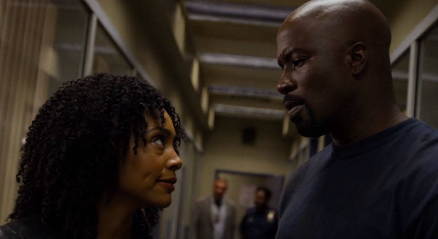 The episode starts with Hernan "Shades" Alvarez (Theo Rossi) on the roof, burning his clothes and trying to deal with having had to kill his friend Comanche (Thomas Q. Jones) for being a snitch. Mariah Dillard (Alfre Woodard) and her daughter Tilda (Gabrielle Dennis) are at the police station after being saved from their burning brownstone by Luke Cage (Mike Colter). Tilda is shaking but Mariah is remarkably calm beause, "People always come after us for who we are." She tells Tilda to say nothing to the cops, this is something they have to deal with themselves. She then goes to talk to Luke, wants to know why he saved her. Luke tells Mariah it was so he could find out why John "Bushmaster" McIver (Mustafa Shakir) hates her as much as he does. She won't say, but she really wants Luke to protect Tilda. The cops return and Misty goes off on Mariah, wants her in an interrogation room. Mariah claims to be the victim, so Misty tells her she's free to go… but of course Mariah doesn't leave because they have no where safe to go. She asks what about her daughter, Luke says he has her covered. Misty gets upset and storms out. Luke follows and finds out that Ridenhour is dead and Misty believes that Mariah was cleaning house like she did with Candace.