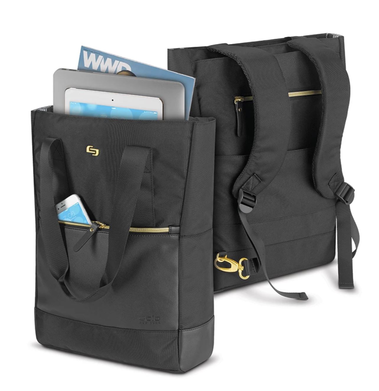 The Parker Hybrid Tote is a combination tote-bag and backpack designed by Solo NY. It's one of Solo's more elegant backpack designs, and you can hide the backpack straps away and use it as a tote instead. Which gives the bag some versatility and makes it a great commuting tool.