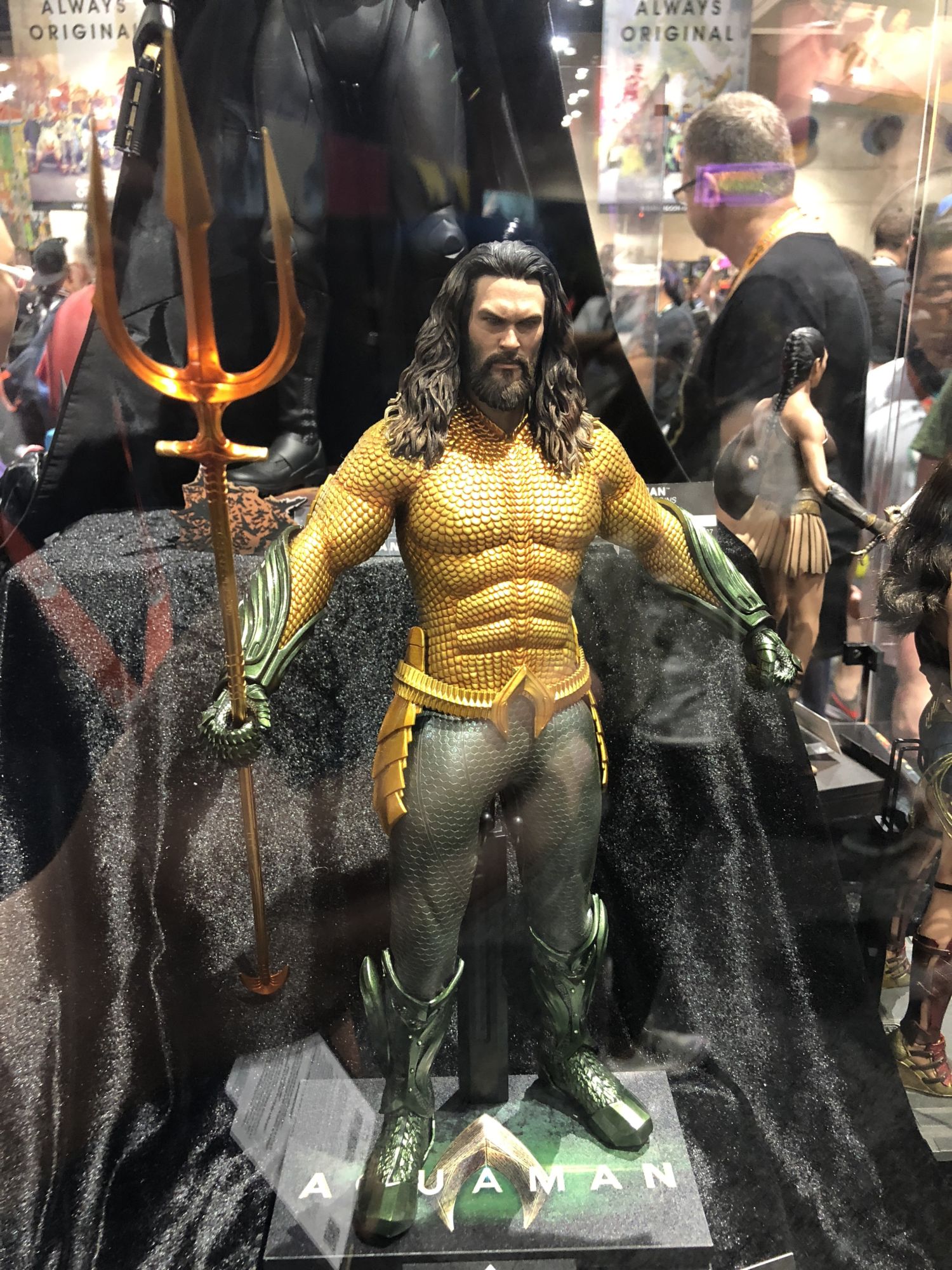 DC Comics figures featured Harley Quinn, Batman, Wonder Woman and others. Of note is a wonderful look at what Aquaman will look like on screens in December. The trident on that one is exceptional.