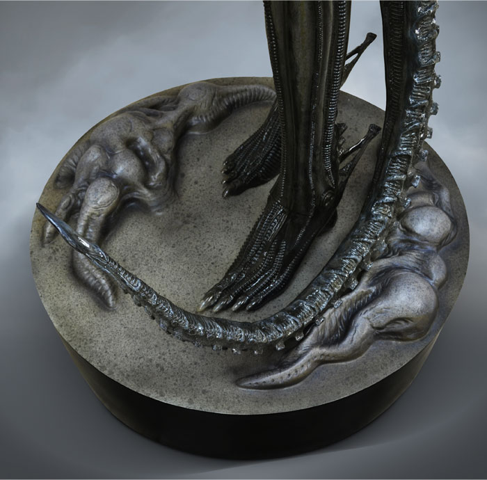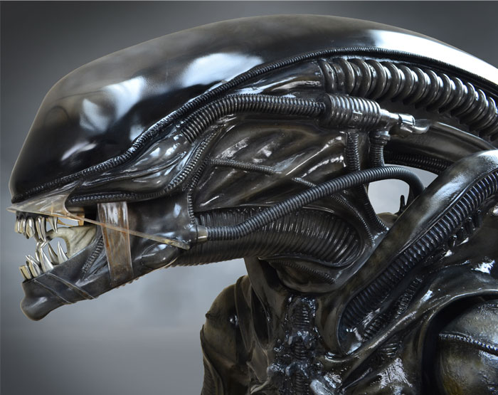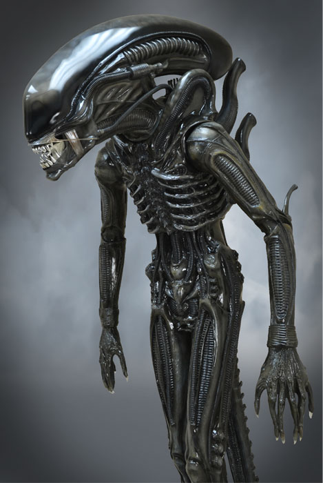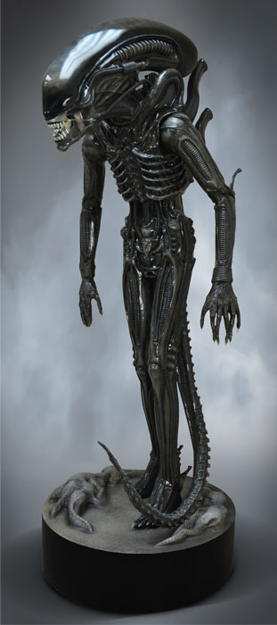 "Designed by H.R. Giger for the movie Alien, the "Big Chap" needs no introduction. His bio-mechanical Xenomorph became one of the most iconic movie creatures ever created. Constructed from fiberglass and mixed media, this spectacular statue stands almost 8 feet tall atop its Alien themed display base! Painstakingly recreated by an Aliens SFX professional with meticulous attention to detail, the Xeno's terrifying presence has been captured perfectly! To ensure authenticity, the major components of the body can trace their lineage back to the molds used to create the original movie costume."
