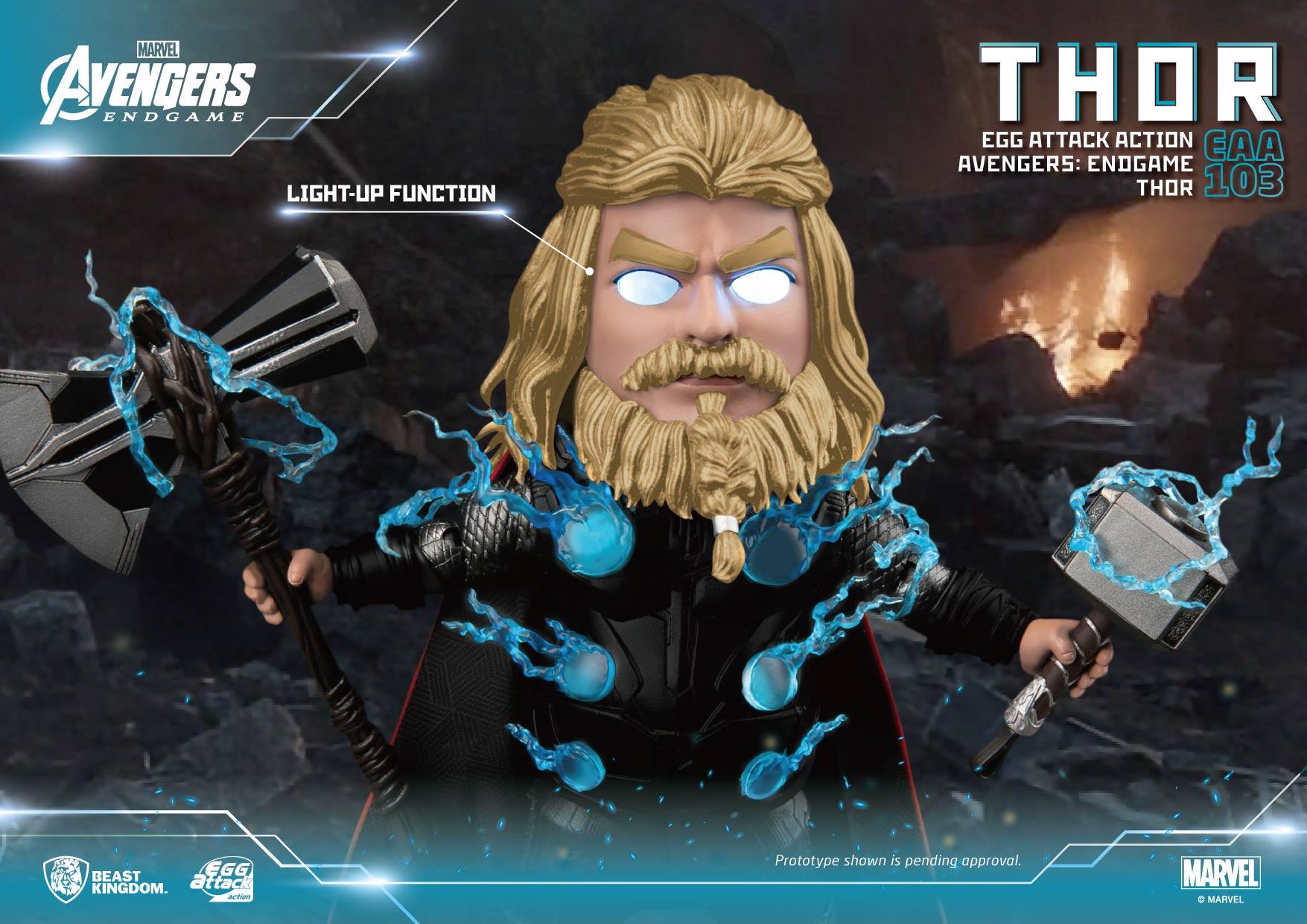 Both Avengers: Endgame egg action attack figures by Beast Kingdom are set for a 2nd quarter release of 2020. No prices have been listed just yet for either Thor or Captain.