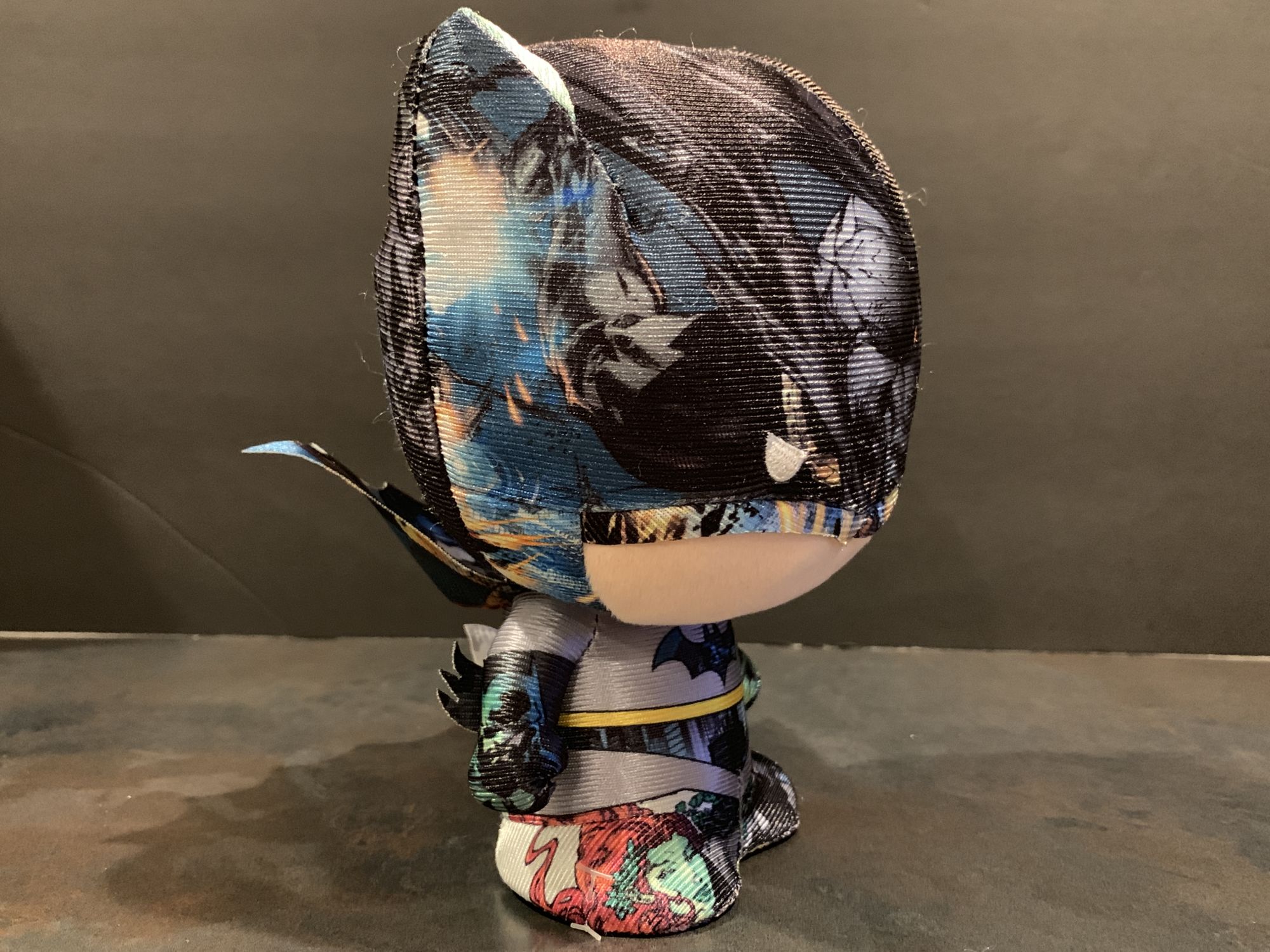 First we will look at the SDCC exclusive Golden Age Batman. Right away you can see how nifty a job they did on these. They stand really well, and at 7 inches these are not small. The stitching work is perfect, and the stuffing is evenly distributed throughout helping the plush keep its shape. There is so much going on here, but I love the sound effects all over the place, and the iconic Batman swinging Detective Comics #27 art right in the front of the cowl. Very cool.