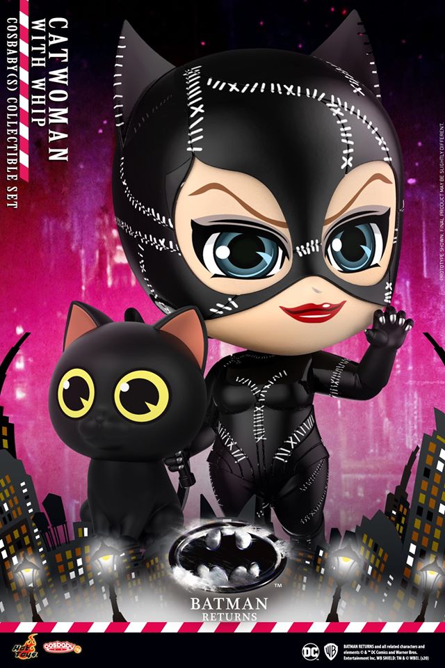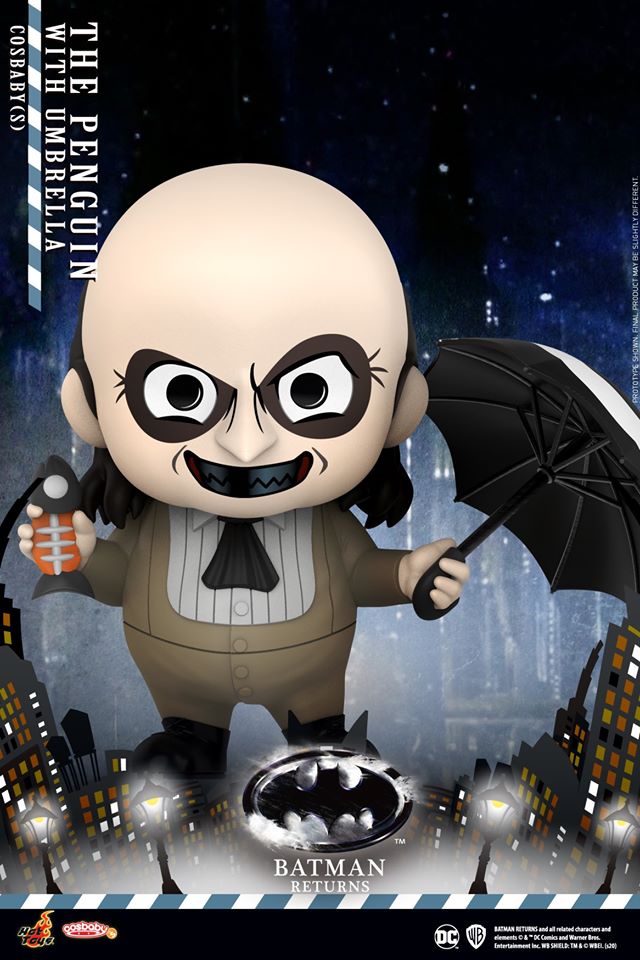 When the bizarre, sinister Penguin plot to take control of Gotham City, only The Legendary hero Batman can stop him, while the mysterious Catwoman has her own agenda. Today, Hot Toys is excited to introduce brand new Cosbaby collectibles based on Tim Burton's 1992 superhero film Batman Returns. Features Catwoman, Catwoman with Whip, and The Penguin Cosbaby (S) Collectible Set; Batman, and The Penguin with Umbrella Cosbaby (S). Each Cosbaby stands approximately 9.5 – 12.5 cm tall with rotatable head and themed figure base; miniature Cosbaby measures approximately 3.5 – 5 cm tall.