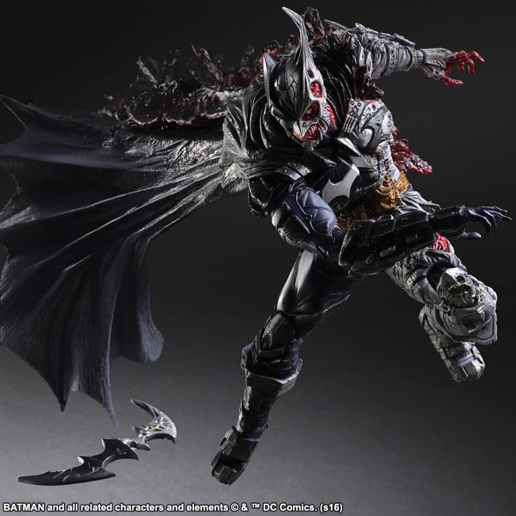 This last mash-up Batman Square Enix Play Arts Kai figure is truly a monster. Harvey Dent has donned the Dark Knights suit this time as Two-Face is here and ready to play. This figure is easily the best of the three, in my opinion, the design alone is something unique, gorgeous, and terrifying all in one. The burnt left side of the figure captures the feel of Two-Face perfectly. The right side is pretty spot on for a normal Batman costume but that added burned side elements is the true essence of a mash-up. This figure will also feature another head sculpt, extra hands, a gun, and a batarang. This is one Batman you would not want to run into in the streets of Gotham as you will not make it back home. Square Enix defiantly did something special with these designs and I'm quite surprised we haven't seen more come out of it. This idea is something special and it brings an original idea to a character that has been around since the 40s. Each villain has its own essence that they captured perfectly. One little detail I really enjoyed is that each figure has its own unique signature batarang style. It is a small feature but as an iconic and symbolic part of Batman, they made each one its own thing and I appreciate that. These are figures that can be added to any fans' wishlist and something they will want to own and display. These figures are mostly sold out online so you will have to stick to third party sellers like here to score a deal. I hope we can get more ideas like this in the future or even new heroes with villain mash-ups.