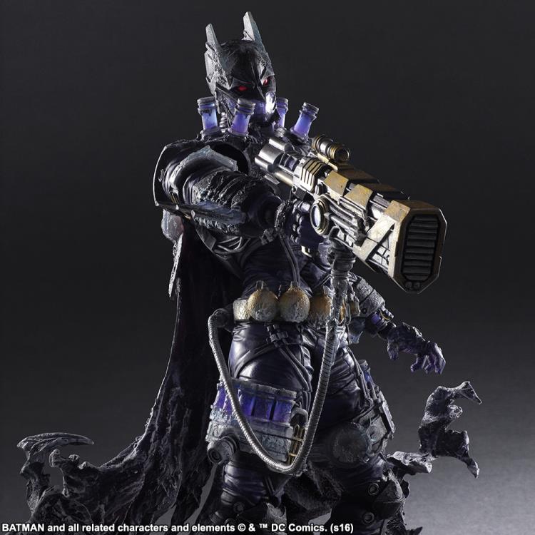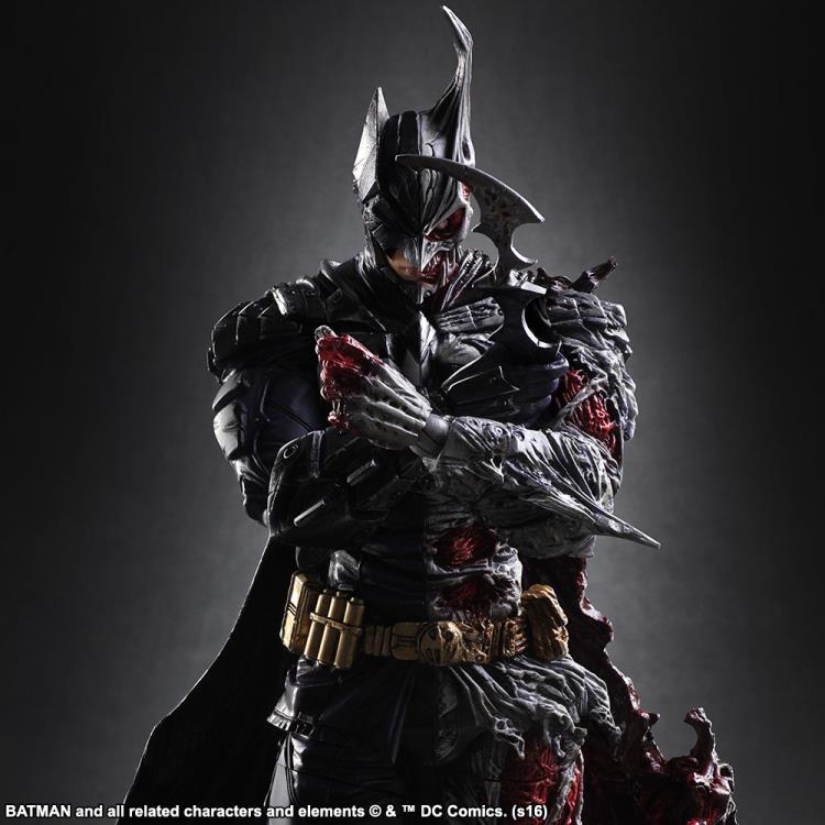 Batman Week is coming to an end and no better way than to go over some forgotten treasures. We have covered a lot of collectibles this week and it was quite fun going back and look at some of the amazing collectibles out there. Whenever doing research you, of course, can get quite distracted on some things you come across. Upon my research, I came across one of the greatest Batman figure lines out there that can get any Batman or DC Comics villain fan excited. Back in 2016 Square Enix released a line of Play Arts Kai figures for Batman. This doesn't sound too crazy right off the back and there are three figures in total with each getting more badass than the previous one. Square Enix is out here creating monsters as they have fused Batman with some of his most iconic villains for some truly unique figures. Joker, Mr. Freeze, and Two-Face have all been recreated as Batman mash-up figures that are something quite terrifying and unbelievably amazing. First, we will be looking at the bats' most notorious villain, Joker, with his Play Arts Kai figure. The design of this character is something almost out of the video game series Bloodborne or Dark Souls. The sculpting is quite terrifying and it shows a Japanese style Batman but with the colors of the Joker. This figure predates The Batman Who Laughs and from his face, hands, and if you can strip down the paint they were nearly spot on with the design. The dark tones of the purple and green keep the sinister level of this Joker alive. He does come with accessories too live a gun, knife cards, batarang, and bang effect. This is one figure that any Joker or Batman fan should add to their grim collection.