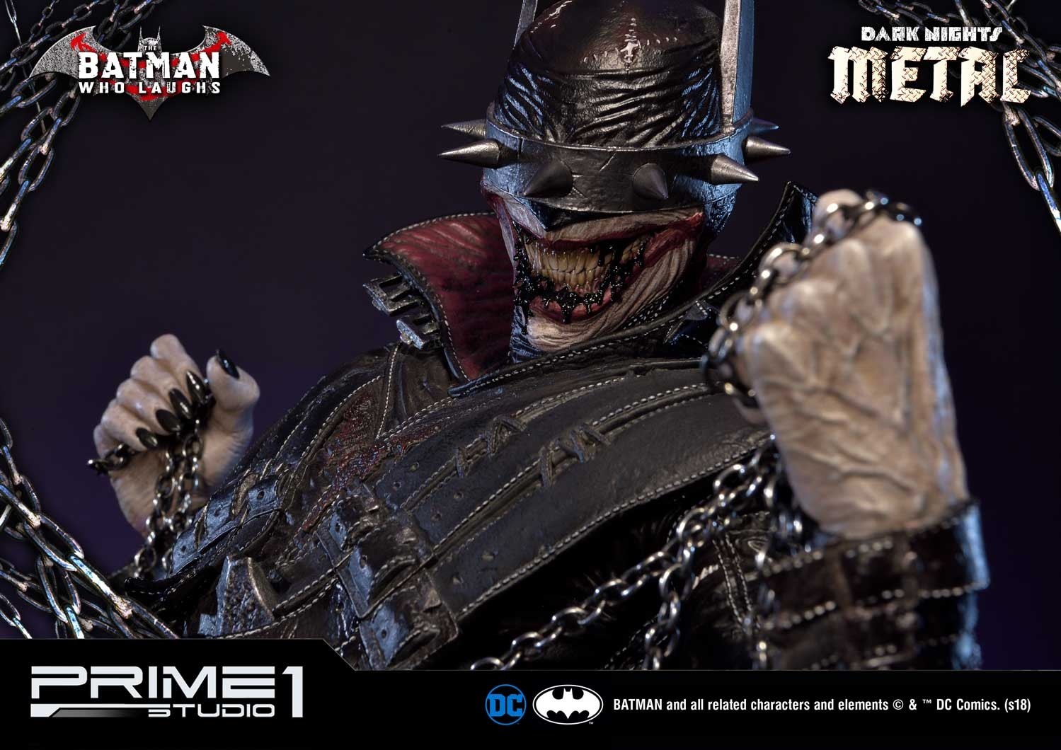 Prime 1 Studio is proud to present 1/3 Scale MMDCMT-01: Batman Who Laughs from Dark Nights: Metal. The Batman Who Laughs is a supervillain in the DC Comics universe. He is a "Jokerrized" version of Batman who originated from the Dark Multiverse. He is the team leader of the Dark Knights and their goal is to help their master Barbatos plunge the Multiverse into complete and utter darkness. This course of action makes them enemies of the Justice League. He serves as the secondary antagonist of the event Dark Nights: Metal. This is a must have for all DC Comics Dark Nights: Metal fan!