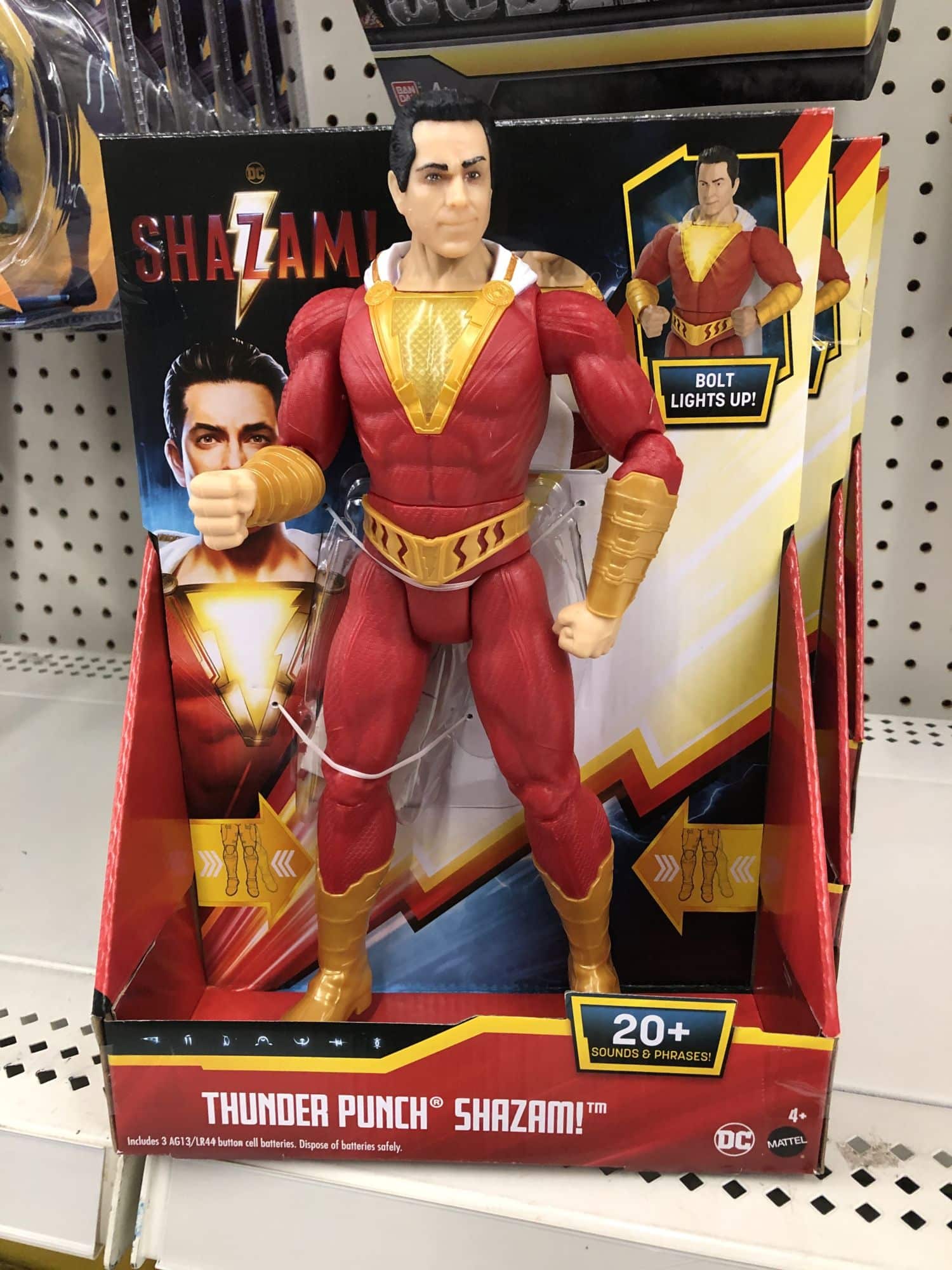 The first Shazam! figures are showing up at Walmarts, with a 12-inch version of Billy in stores. This one has punching action, along with a talking chip that says 20 phrases.