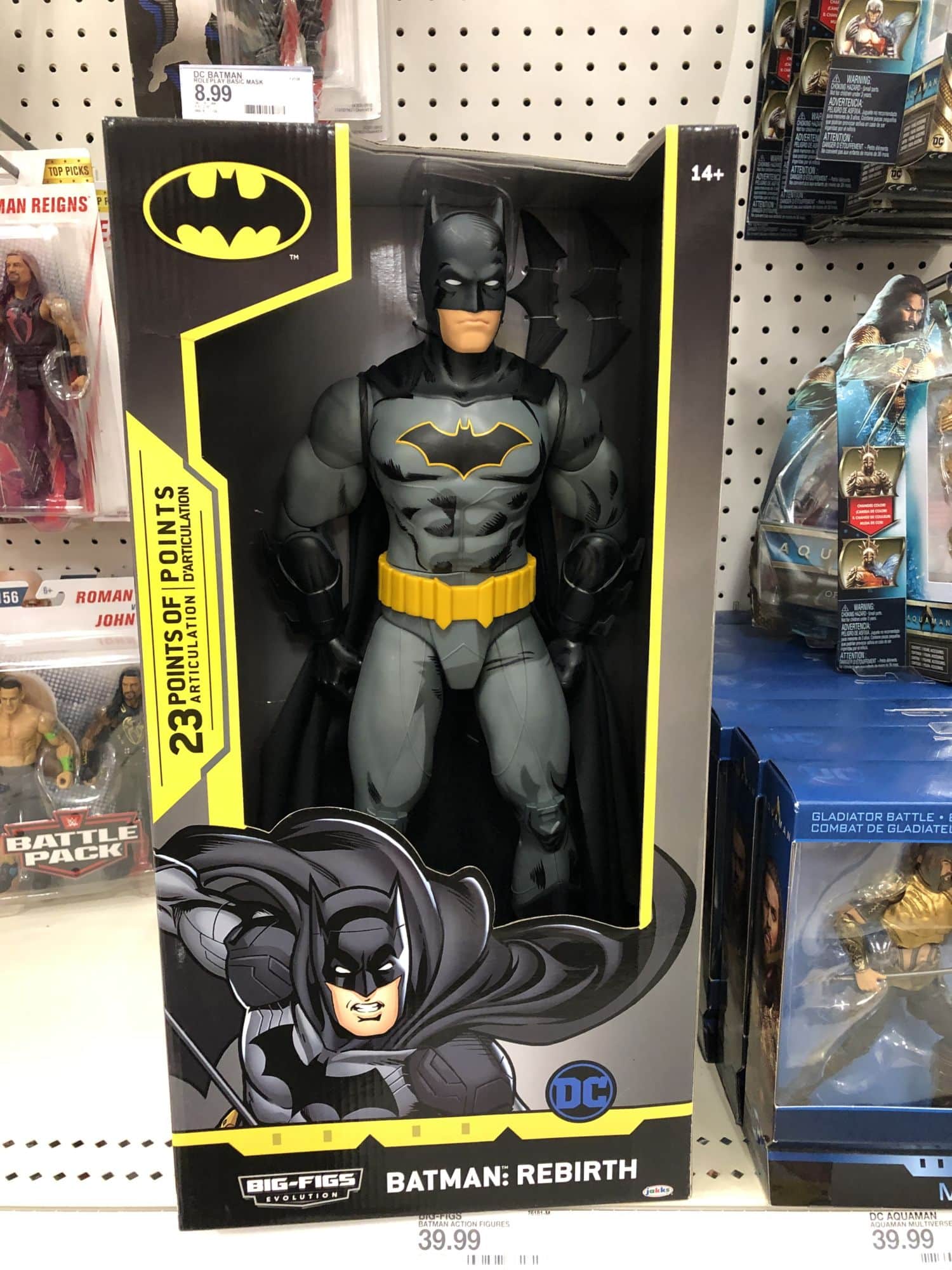 Mattel's new Batman line of figures is in stores, with new Rebirth Batman and Two-Face figures available. Big Figs Rebirth Batman is also available.