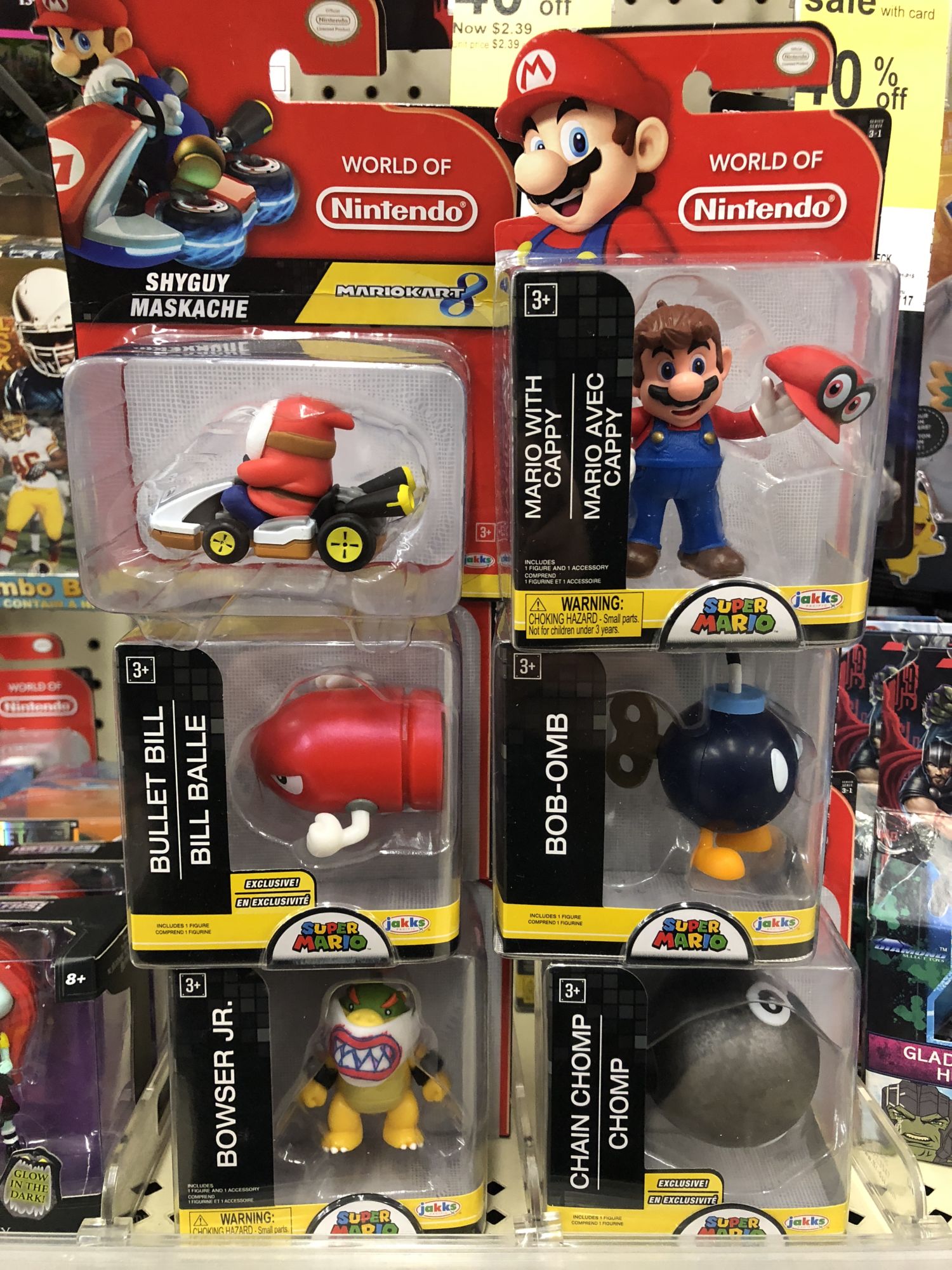 At Walgreens we found some new Marvel Pin Mates, along with the newest wave of Jakks Pacific World of Nintendo figures.