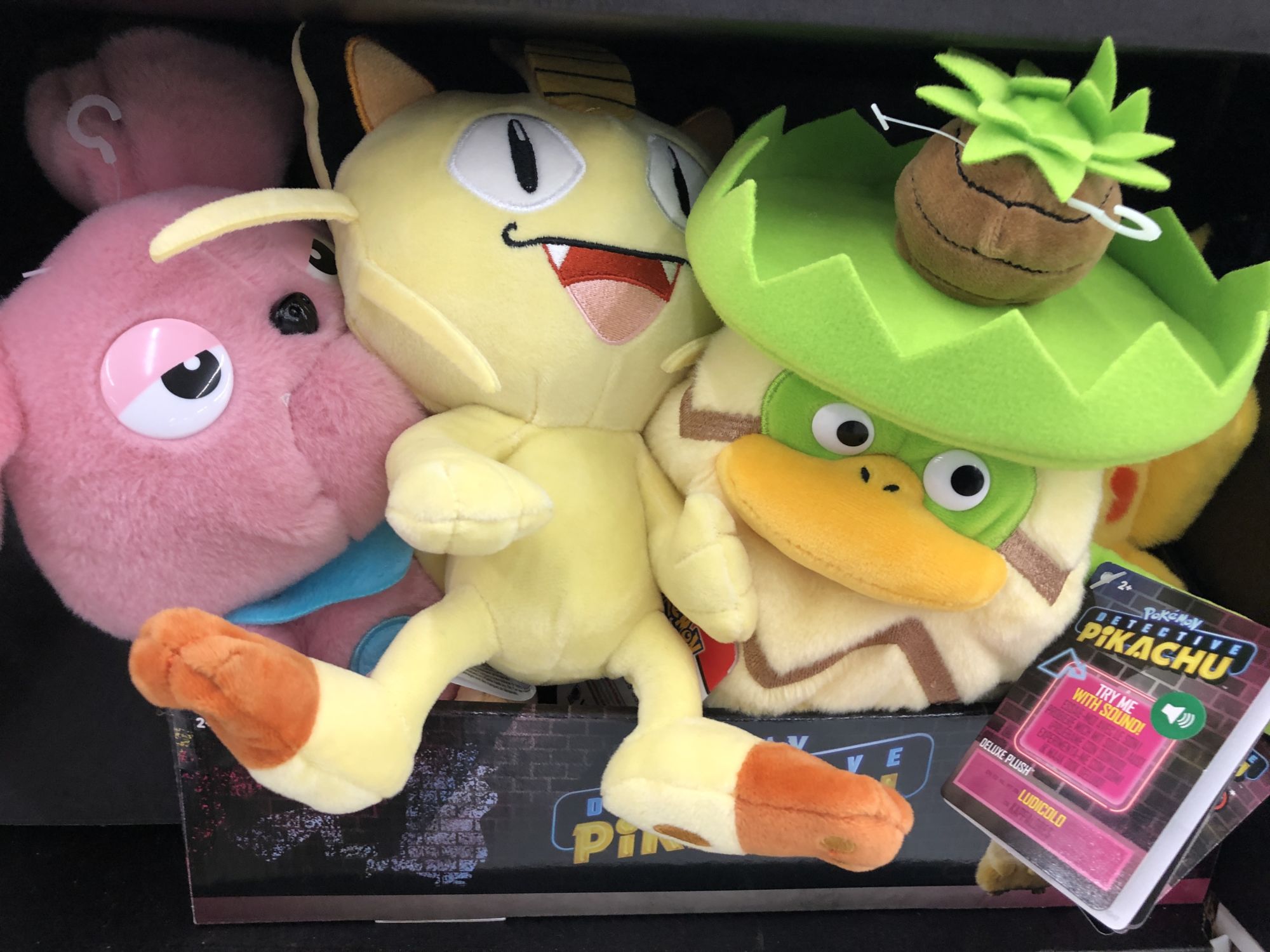 Wicked Cool Toys Detective Pikachu line is arriving everywhere now, including plush. New Detective Pikachu Pokemon card sets and tins are also popping up in stores.