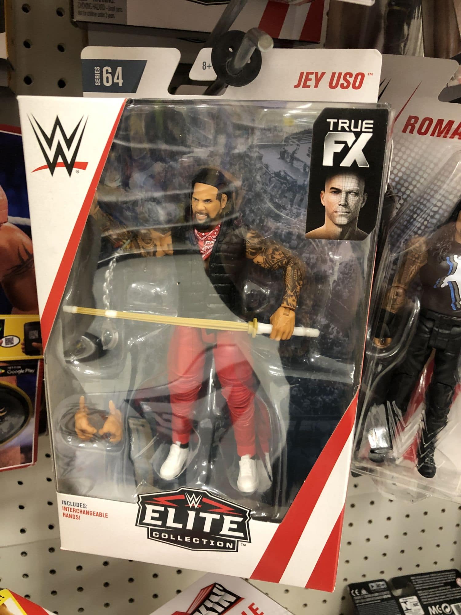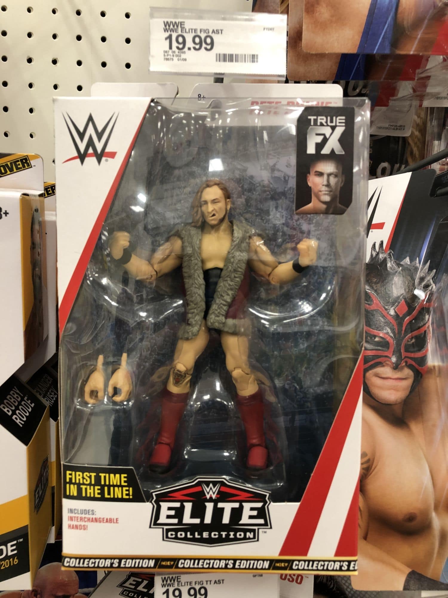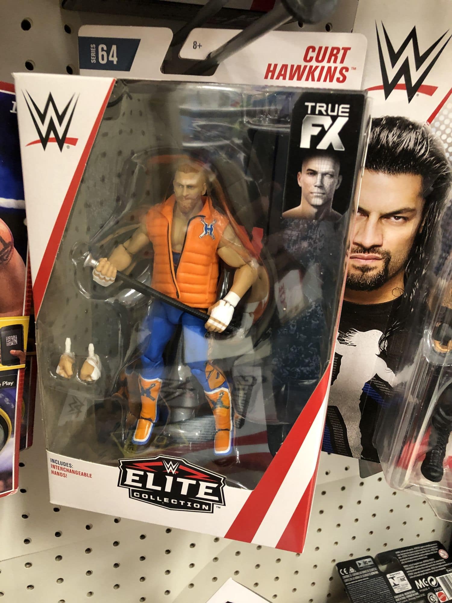 First up: WWE figures are hitting in full force. Basic 91 has popped up, along with multiple sets of Elites. Elite 64 specifically has been showing up at Target, including The Usos, John Cena, Seth Rollins, Curt Hawkins, and the first figure for Pete Dunne, which is exclusive to there. We also found the Walmart exclusive Elite Bob Backlund! We haven't found them yet, but Targets are also getting NXT Series 4, featuring Aleister Black, Drew McIntyre, Ruby Riott, and Killian Dain.
