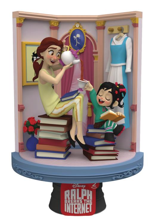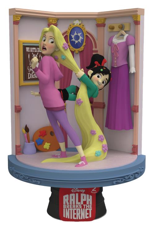 Based on the princesses' locker room scene from Ralph Breaks the Internet, the D-Stage statues feature Vanellope sharing precious moments with her fellow Disney Princesses.