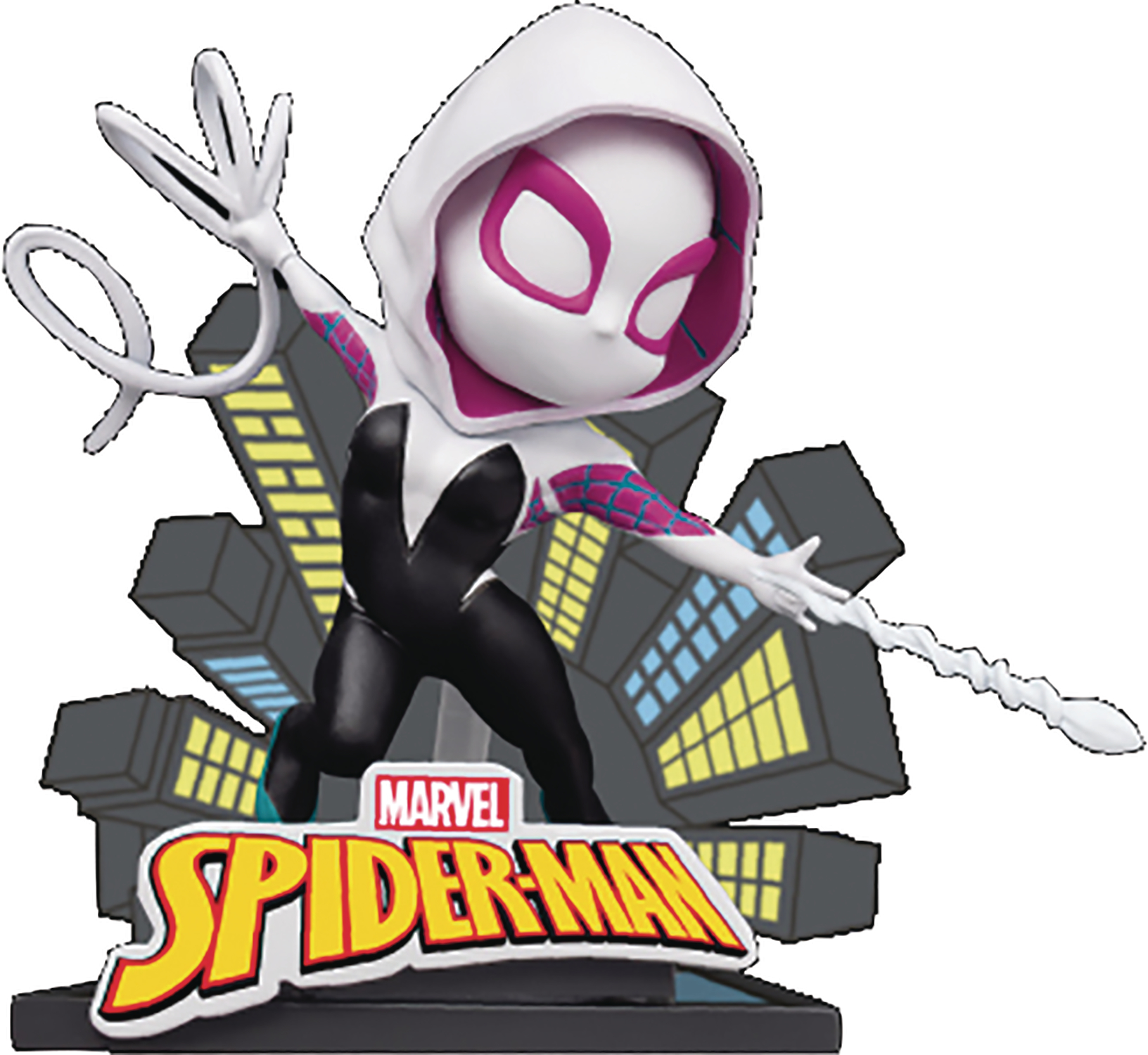 From Beast Kingdom. A PREVIEWS Exclusive! With summer officially in full-swing, why not take home some seriously fun swinging action from the new Marvel Comics: Spider-man Mini Egg Attack series, brought to you exclusively by Beast Kingdom! Arguably the most well-known character in Marvel's Comic universe, the friendly neighborhood Spider-manis now joined with the multiverse's Spider-Gwen and Miles Morales, as well as the infamous anti-hero; Venom! With the release of Beast Kingdom's new Spider-man MEA range of mini statuettes, each character recreates their classic comic poses using three-dimensional recreations. Added extras to each piece such as colorful building backdrops, and bases with 3D logos creates the ultimate in comic collectability. Cute and small they may be, yet with delicate painting, each tabletop statuette is sure to be a head turner. So make sure to get all four in your collection and get those Spidey-Senses tingling today!