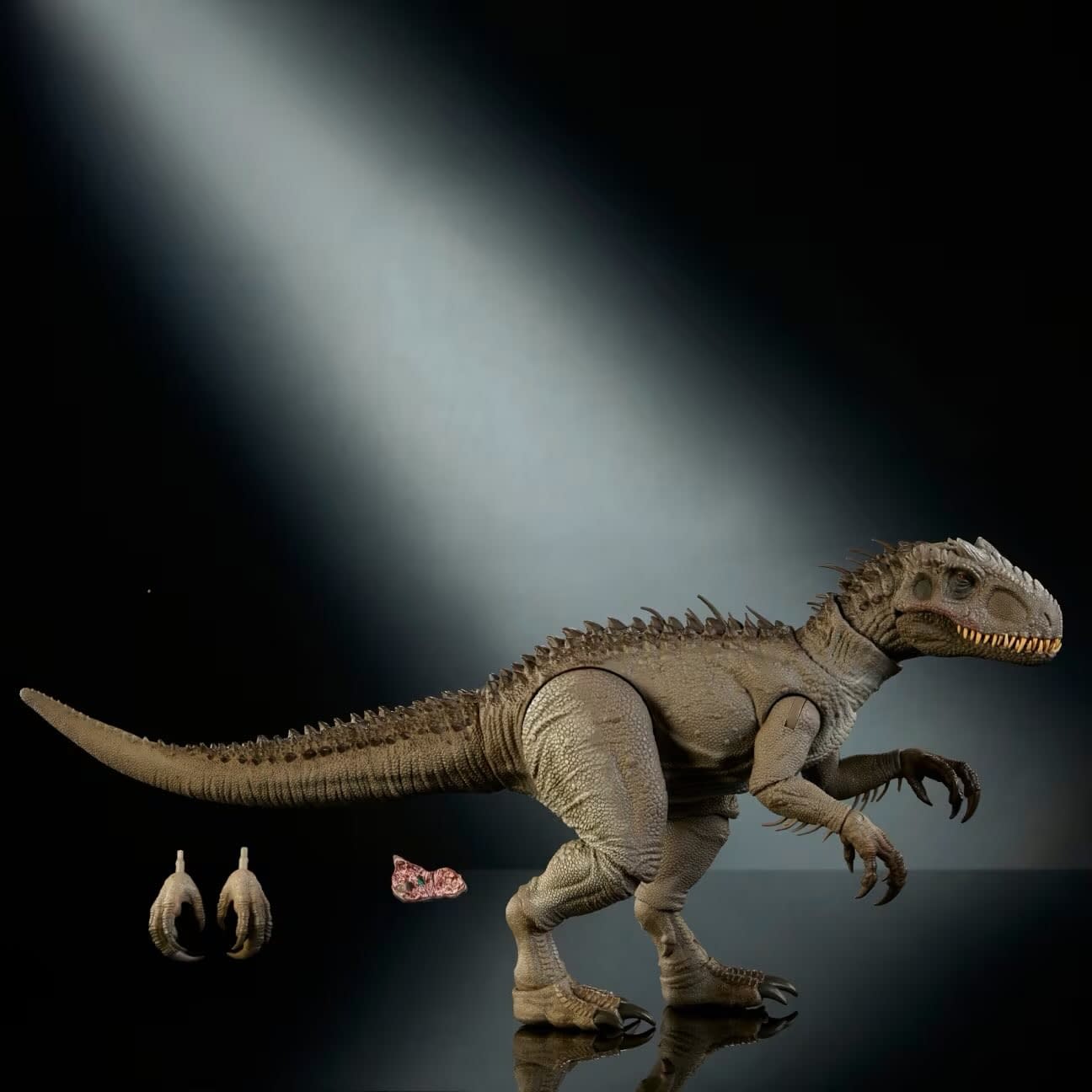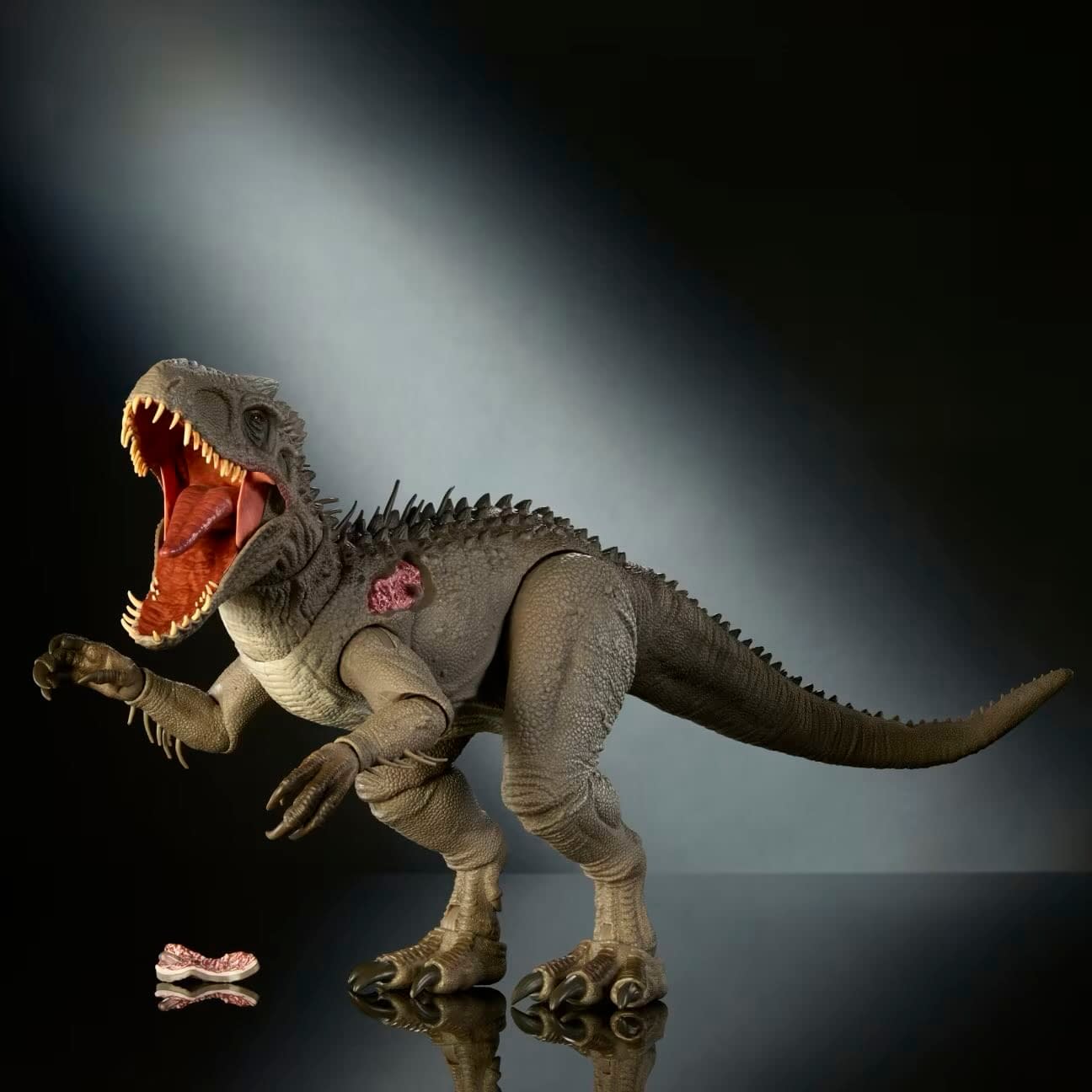 - Movie-accurate, this camouflage-colored Indominus rex has the wound in her side where the tracker was clawed out, and has the tracker as an accessory, along with alternate "grabbing" claws.