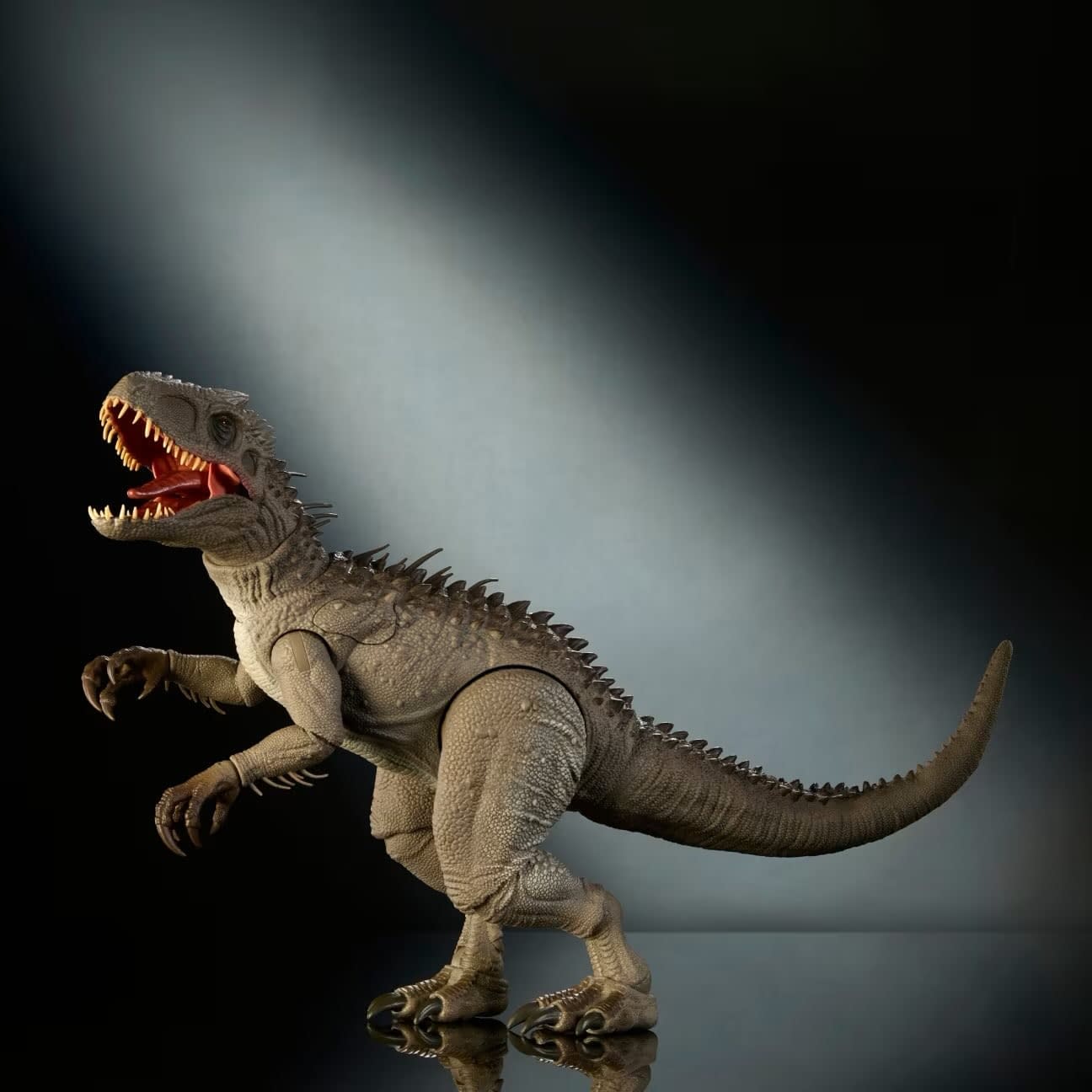 - With hyper-realistic eyes and teeth, textured neck scales and posable tail, this 26-inch dinosaur villain is ready for the spotlight in realistic product photography or dramatic display.