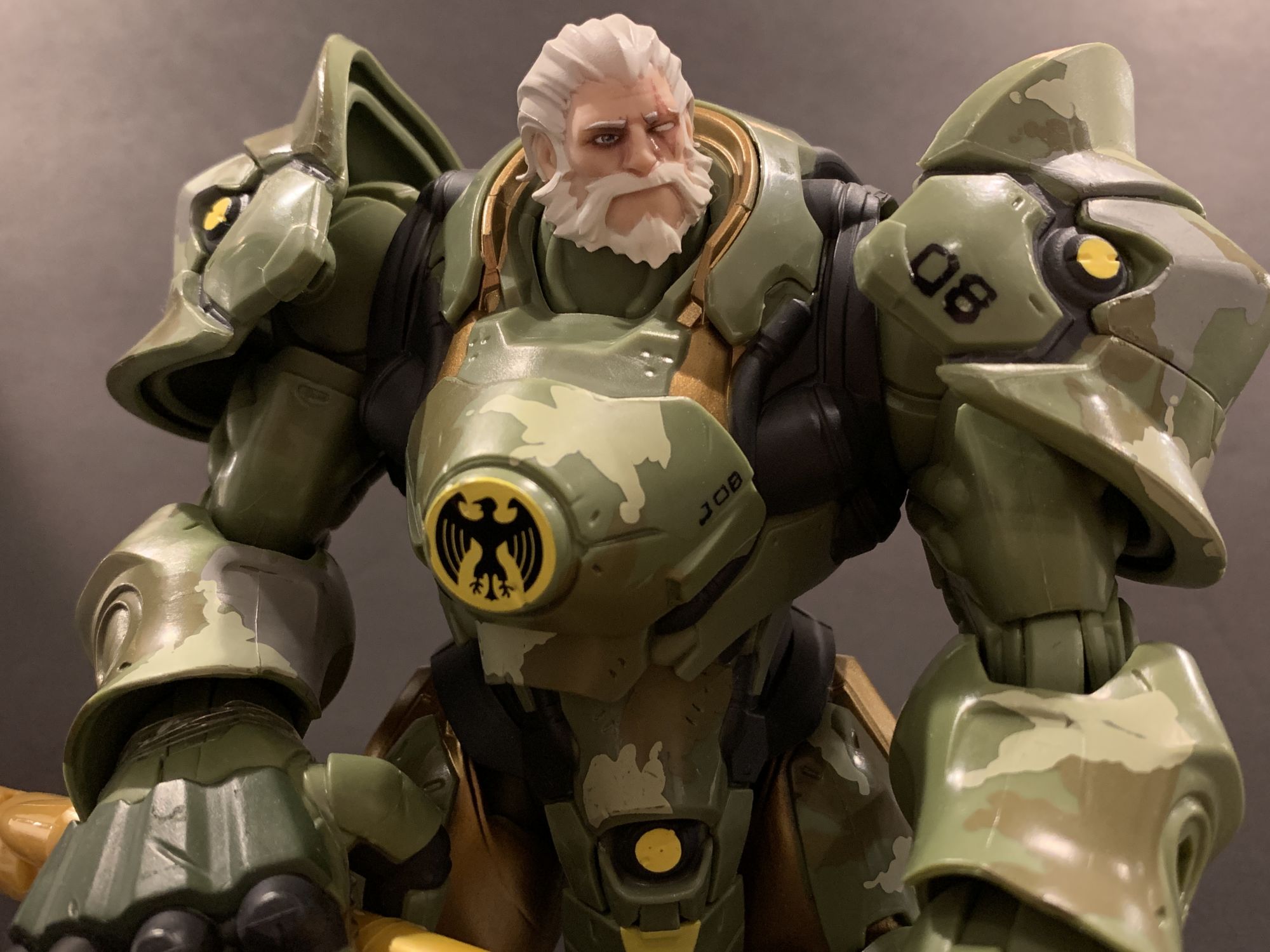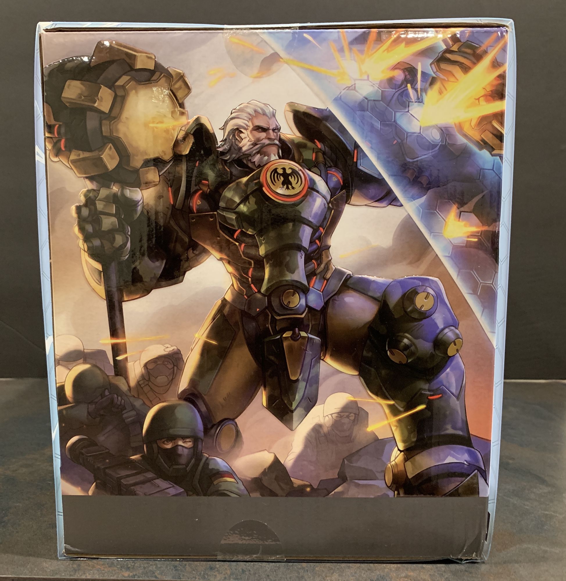 First up, in partnership with Hasbro, is a new version of Reinhardt from Overwatch. These Ultimates figures have been a pretty big hit for Blizzard and Hasbro, and the big fella was a natural fit for a SDCC exclusive this year. This is a straight repaint of the regular release figure, this version is based on his Bundswehr skin, removing his helmet and showing off what they can really do now with their headscan tech. This is a behemoth of a figure, and an impressive one at that. While bulky, it does not limit his mobility or articulation. That's not to mention his giant shield as well, also included here. I hated opening this as well, as Reinhardt is posed in an action scene in the gorgeous box. I have zero complaints about this one. It will be available on Hasbro Pulse for those who were not at the con on August 15th.