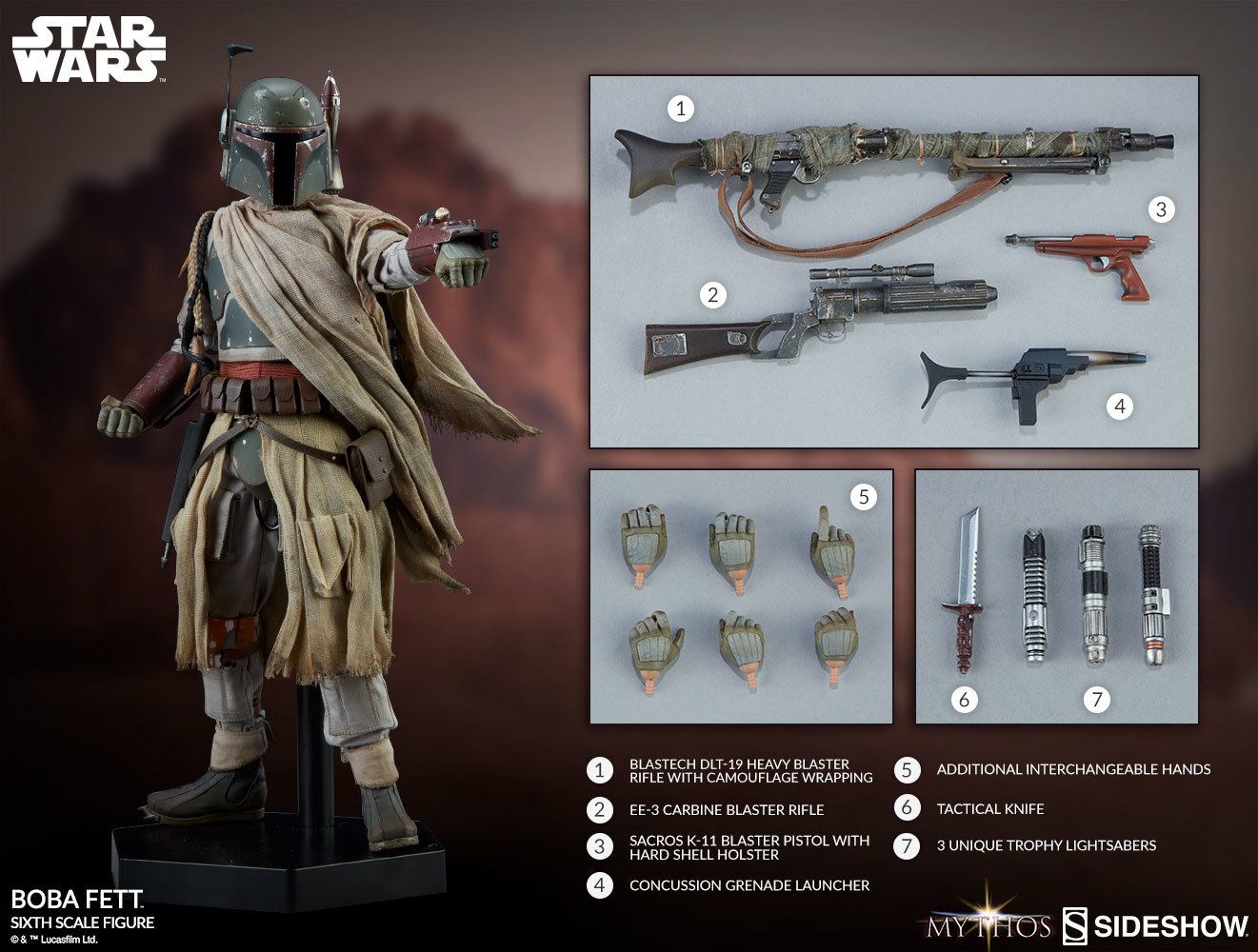 Sideshow is excited to unveil the next addition to the Star Wars Collectibles Mythos series, the Boba Fett Sixth Scale Figure.
