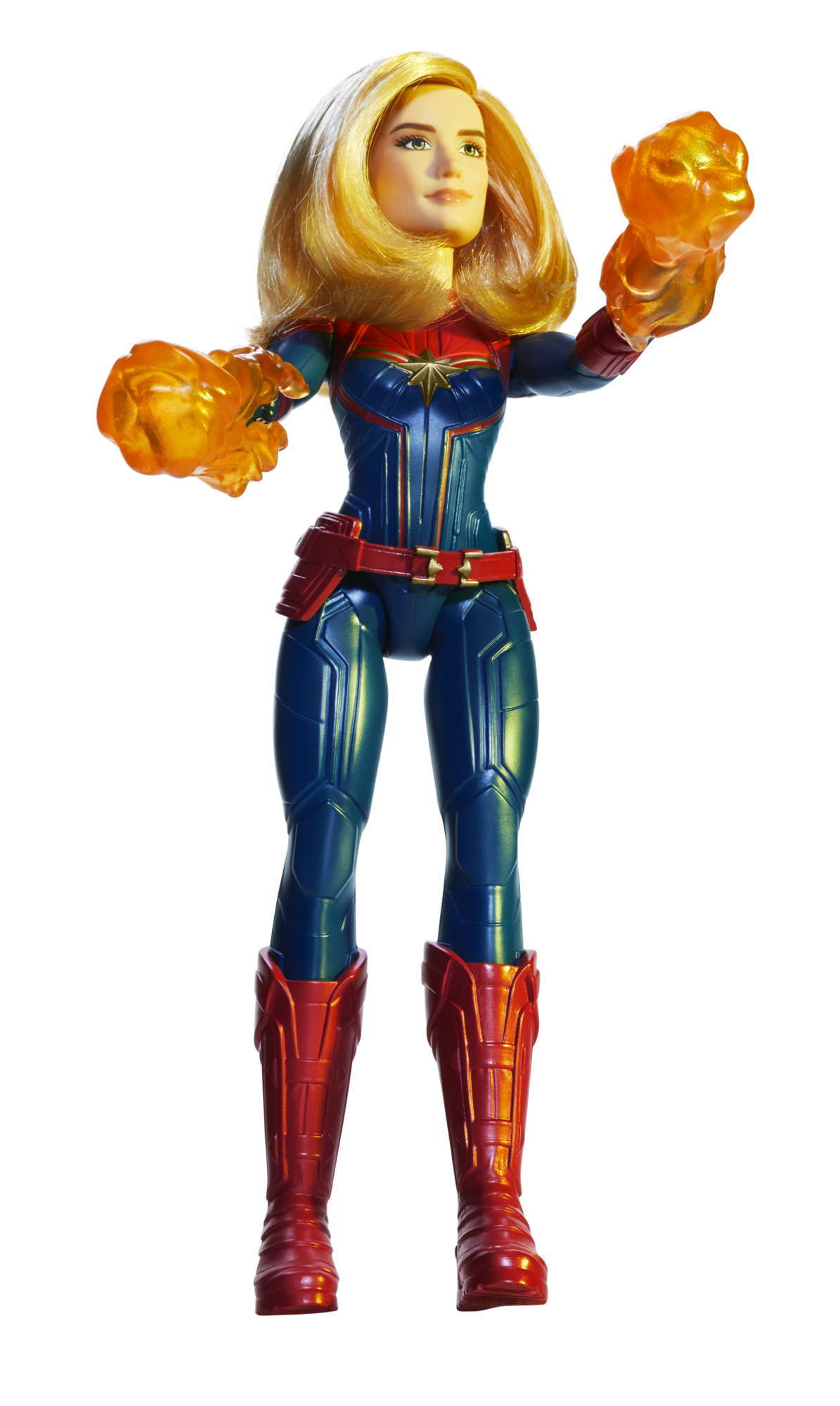 CAPTAIN MARVEL is a fearless leader who uses incredible energy-blasting powers to take down enemies and protect the universe! Imagine her blasting into action with this 11.5-inch scale, electronic PHOTON POWER FX CAPTAIN MARVEL DOLL, featuring superpower-inspired lights and sounds and including accessories, and rooted hair. Doll inspired by the upcoming movie. Poseable doll features 11 points of articulation so kids can put their doll in dynamic poses and move her into action! Includes doll, belt, boots, and instructions. Each sold separately. Requires 1 AAA battery, included. Available at most major retailers.