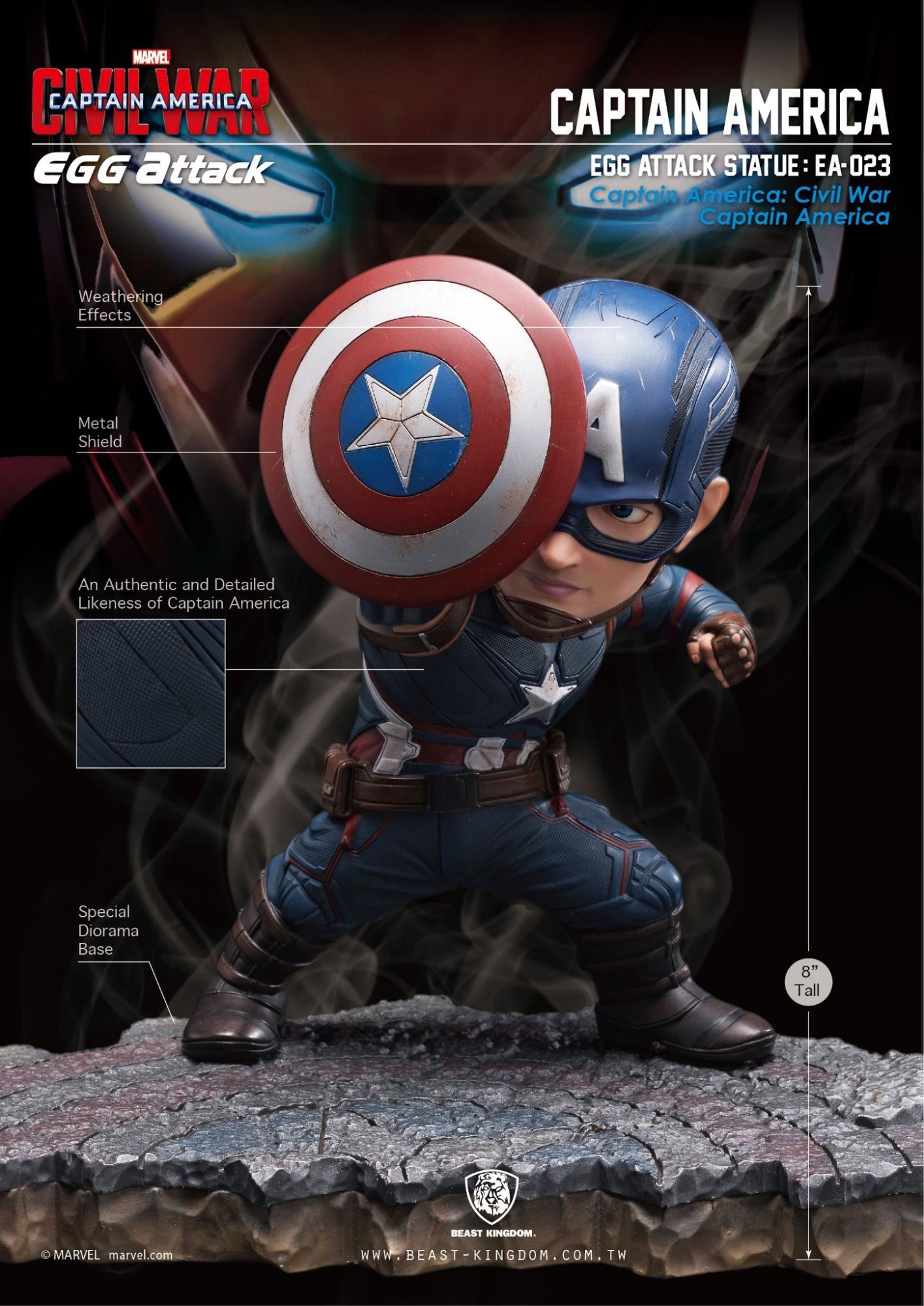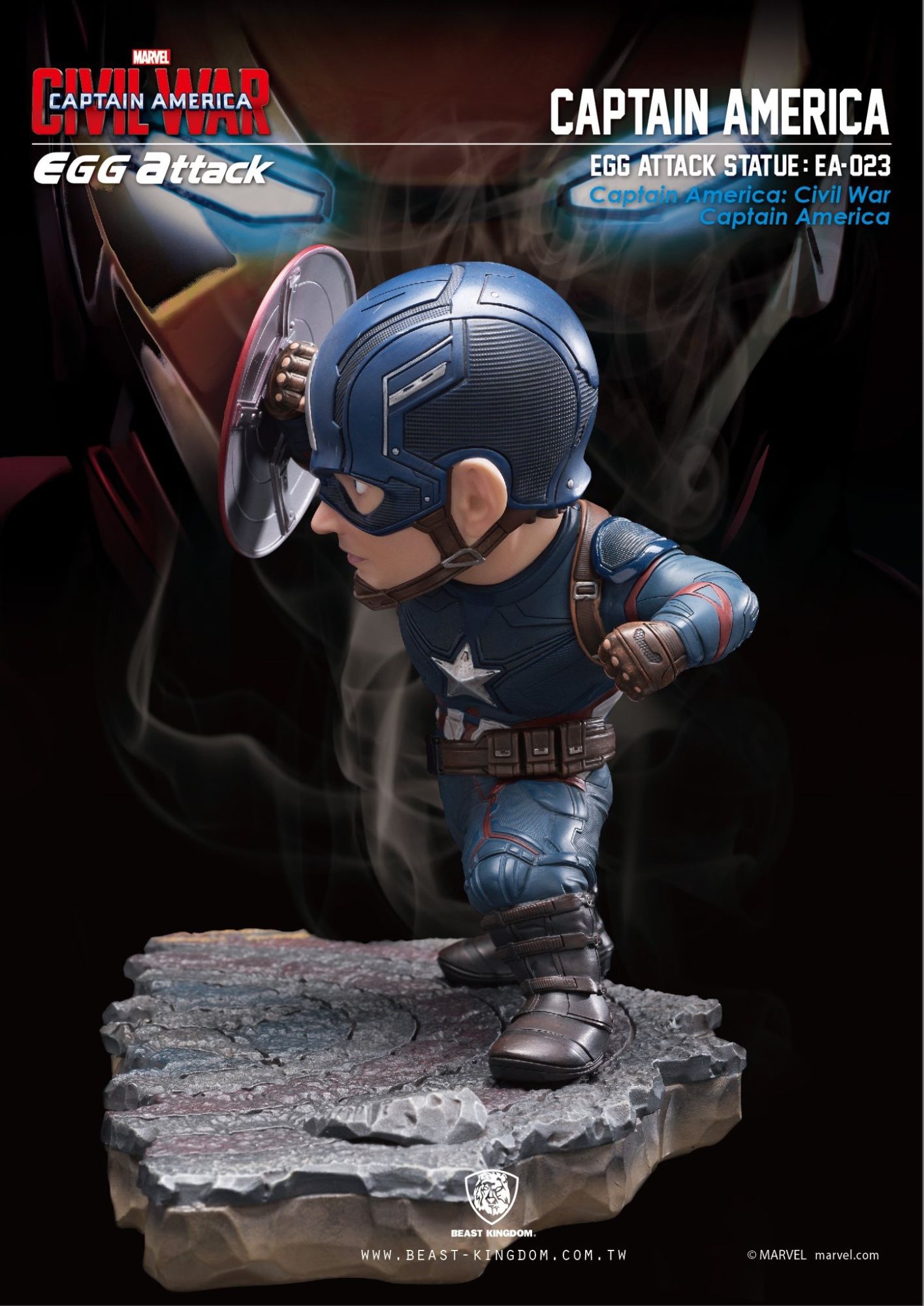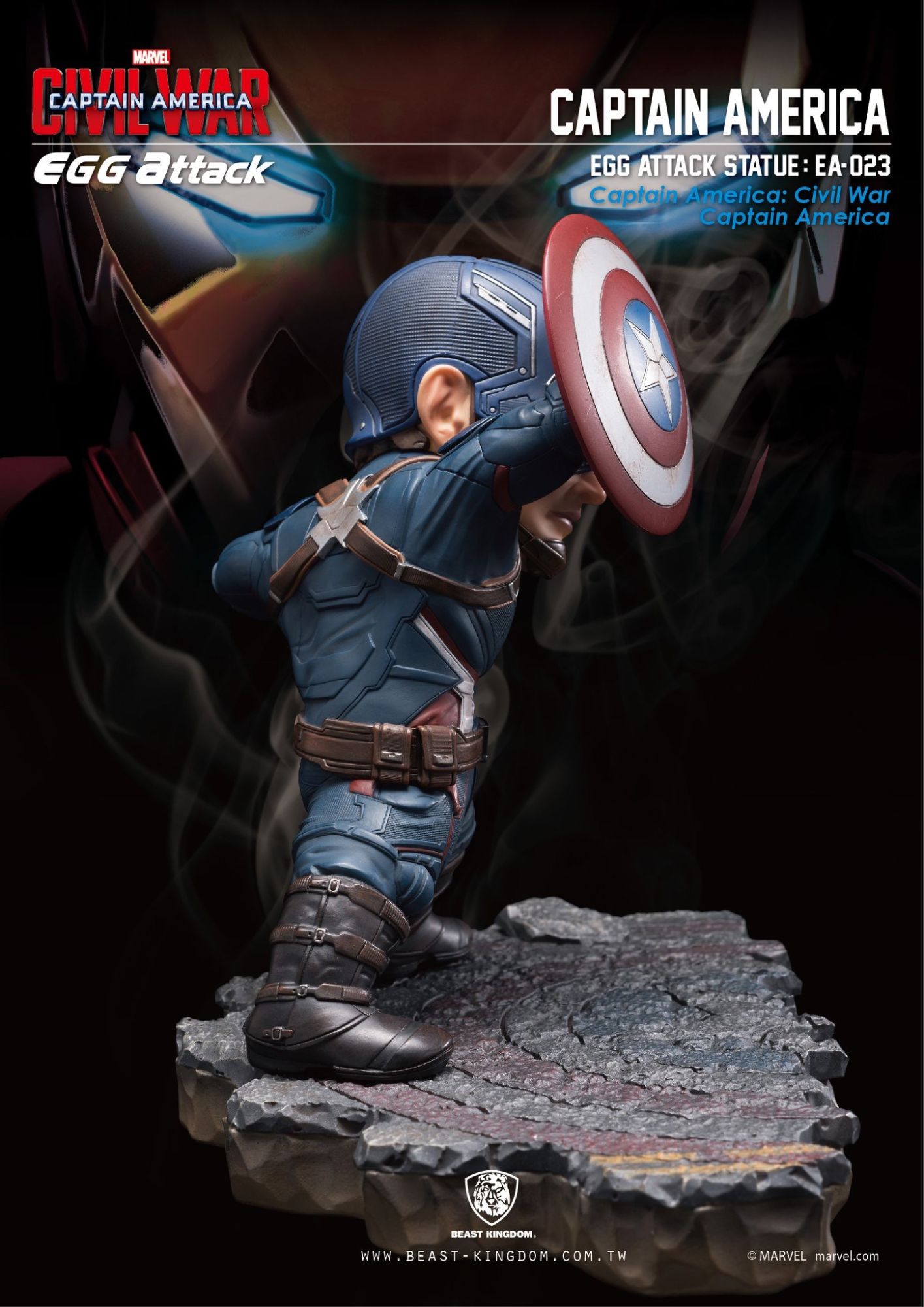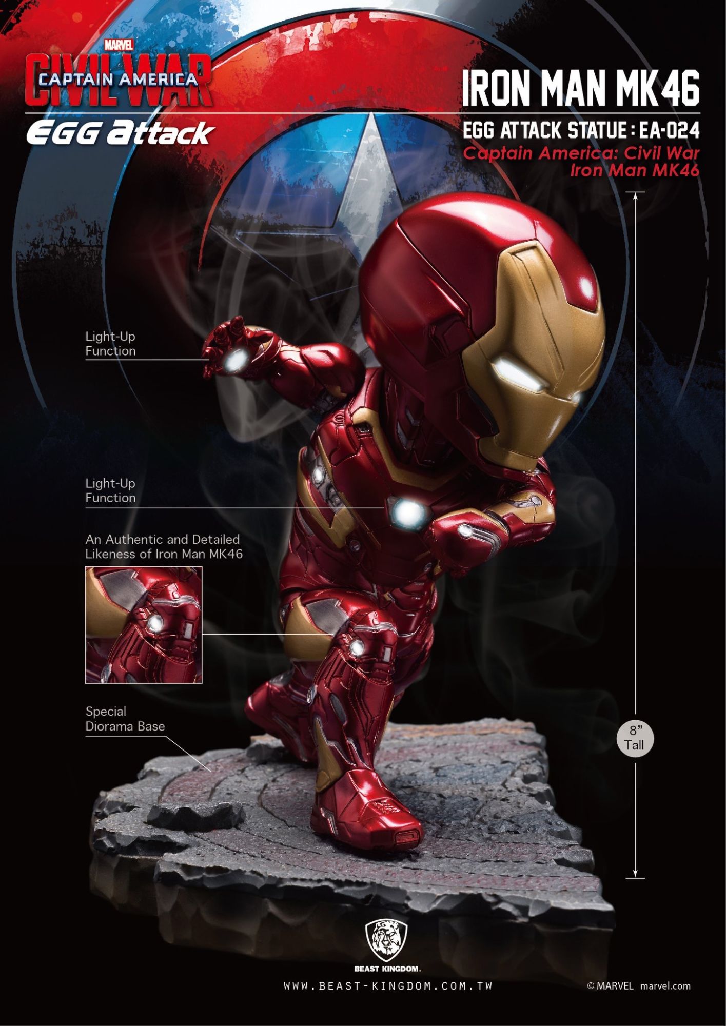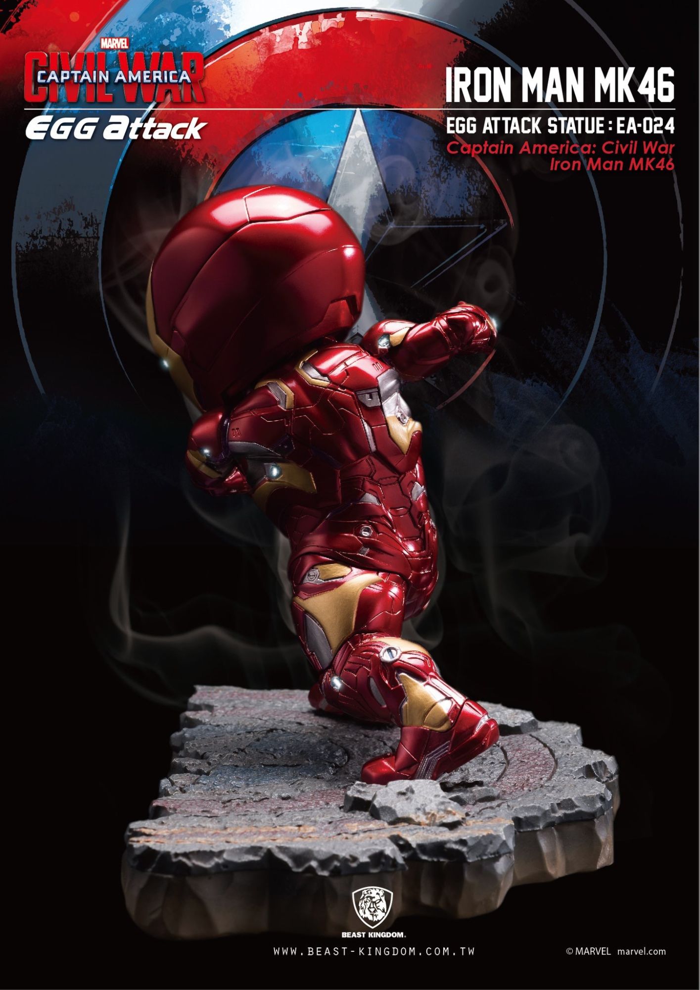 Beast Kingdom is proud to present the highly-anticipated "Egg Attack EA-025 Captain America: Civil War Captain America vs. Iron Man MK46 Statue," recreating the famous fighting scene from the Captain America: Civil War movie.