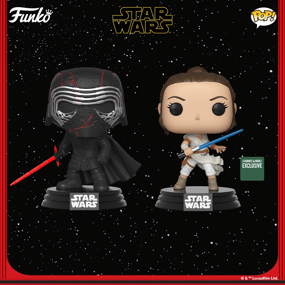 A Pop! Knight of Ren (Club) is available exclusively at Hot Topic. Pop! Knight of Ren (Cannon) is available exclusively at Walmart. Pop! Knight of Ren (Blade) is available exclusively at FYE, Pop! Knight of Ren (Blaster) is available exclusively at GameStop, a two-pack Pop! D-O and BB-8 is available exclusively at Books-A-Million and a Pop! two-pack Kylo Ren and Rey is available exclusively at Barnes and Noble.