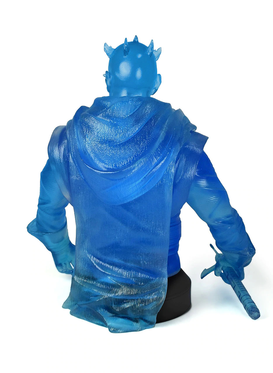 When you can't be there in person, send a hologram! Darth Maul beams a remote transmission to collectors as the newest mini-bust in Gentle Giant Ltd.'s Star Wars line. Measuring approximately 7 inches tall, this 1/6 scale mini-bust depicts Maul as he appears in Solo: A Star Wars Story, and is cast in translucent blue resin to simulate the hologram's effect. Limited to only 500 pieces, it comes packaged in a full-color box with a certificate of authenticity. A Gentle Giant Ltd Exclusive! $120.00