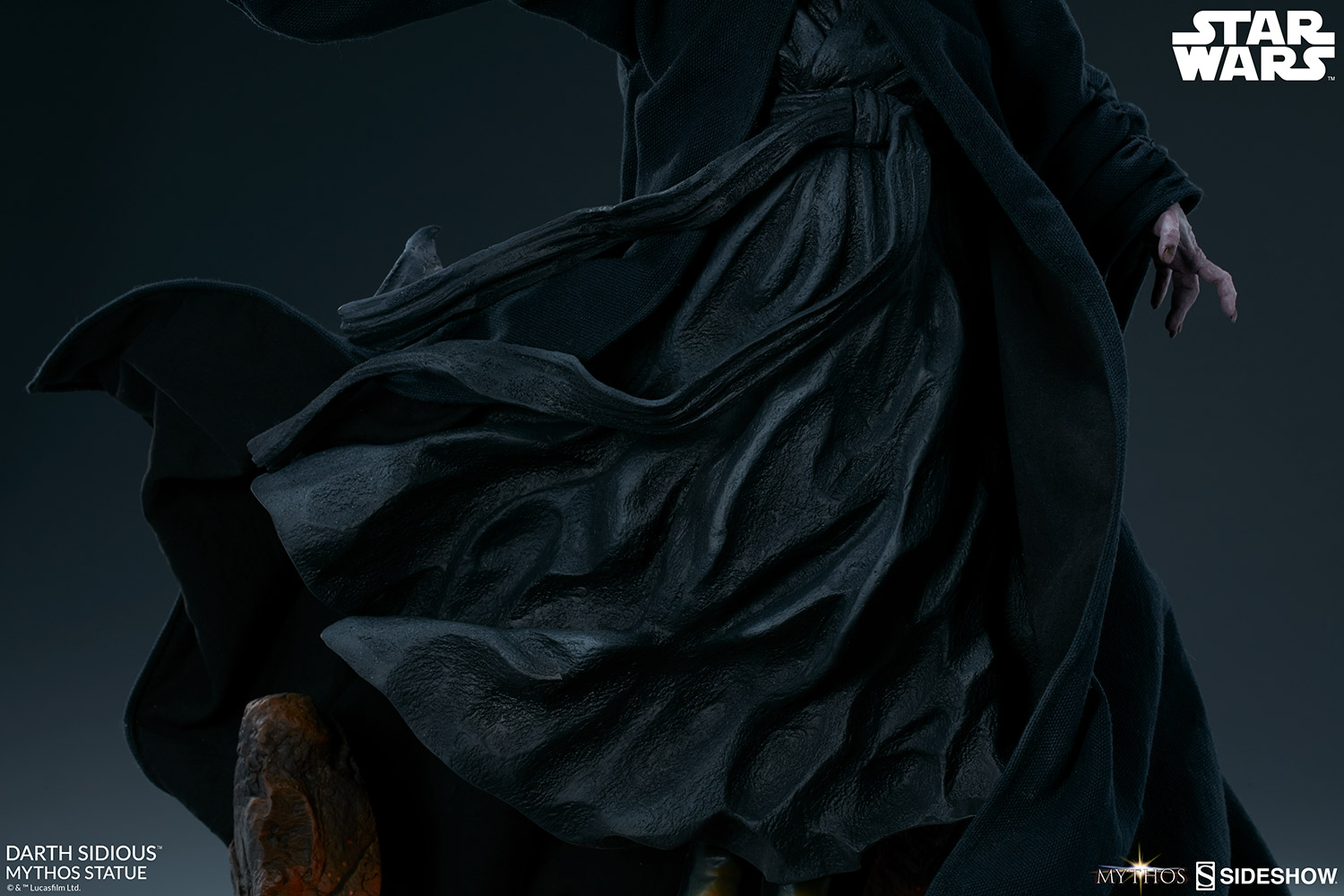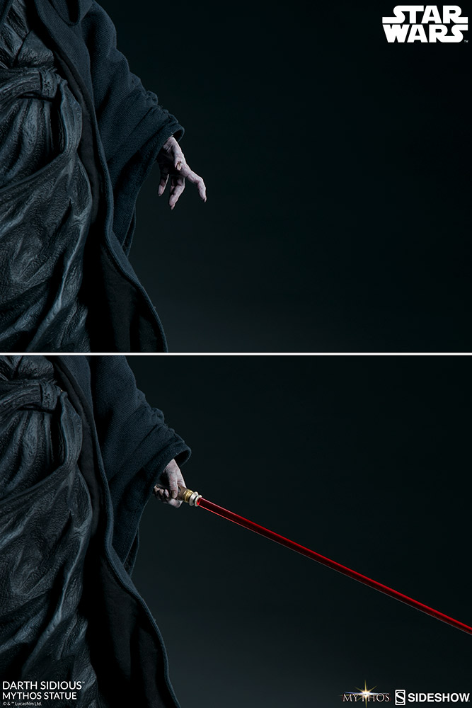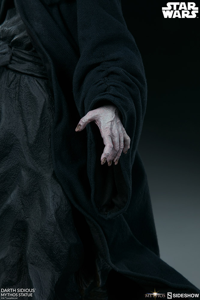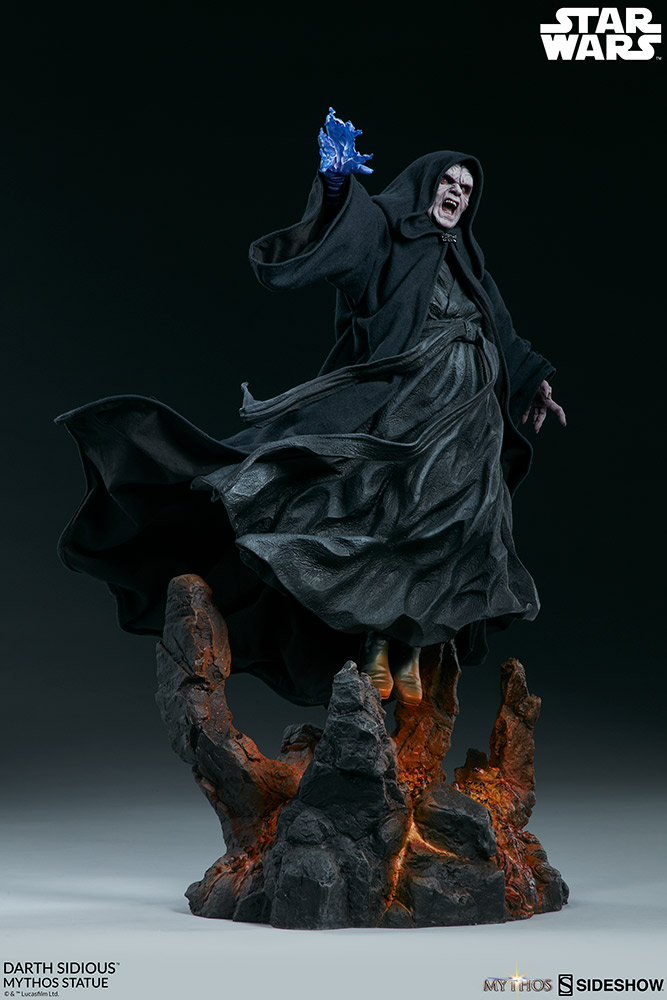 Sideshow presents the Darth Sidious Mythos Statue, ready to rule your galaxy of Star Wars collectibles. As a collection, Sideshow's Mythos series are fine art collectibles that allow the collector to imagine what could have been, but maybe never was. Myths meant to be initiated by the eye and completed by the mind.