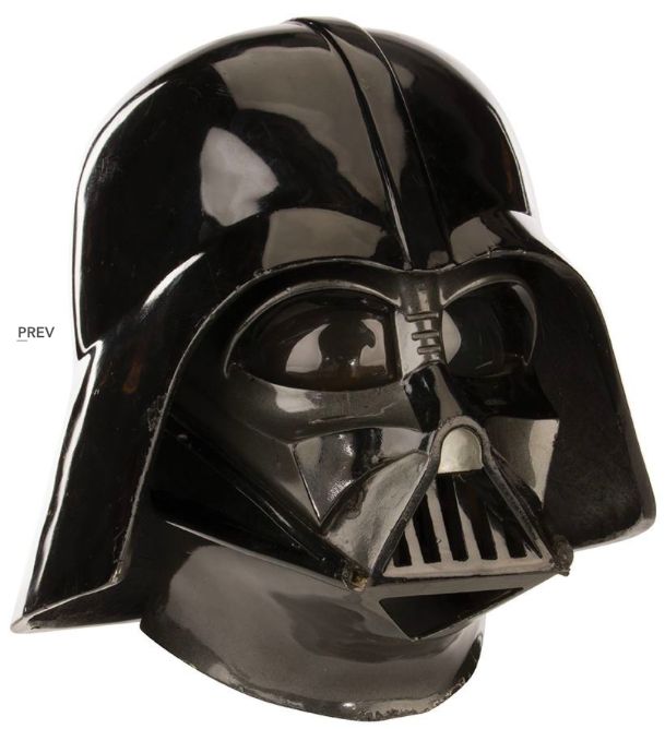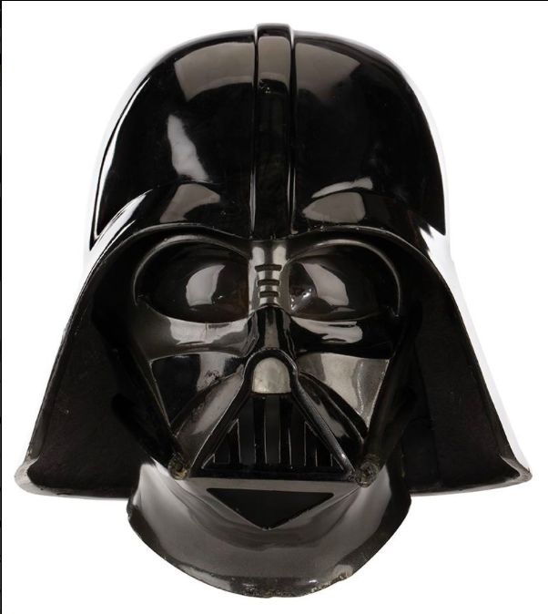 489. David Prowse "Darth Vader" screen used signature mask and helmet from Star Wars: Episode V – The Empire Strikes Back. (TCF, 1980) Without question, Darth Vader is one of the greatest villains ever portrayed on film. His angular, skull-like mask and helmet has been lifted to iconic status and is universally recognized as a symbol of evil in pop culture. Both the mask and helmet are constructed of fiberglass. The Mask is painted in dark metallic gray with black accents; its interior is marked with a "1" in white paint with worn foam rubber padding and tinted plastic lenses.