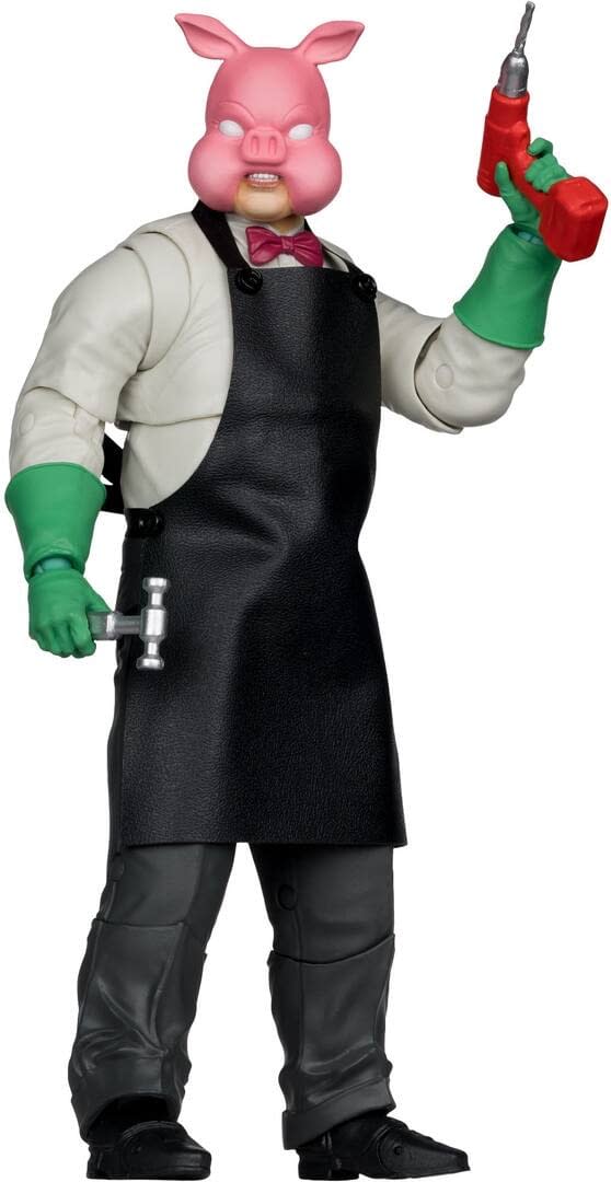 - Includes signature pig mask, soft goods apron, surgical tools, extra hands, and a character art card.