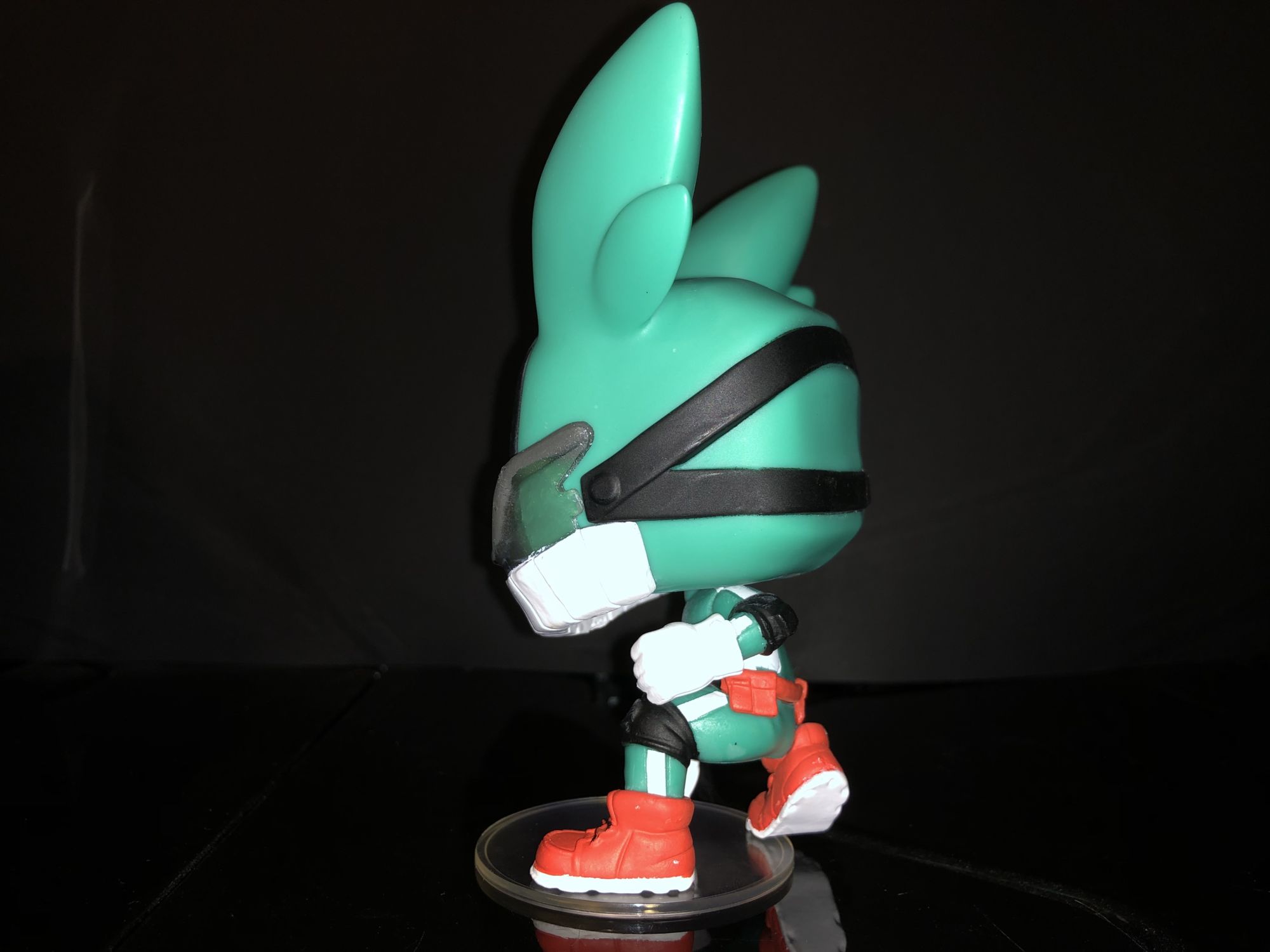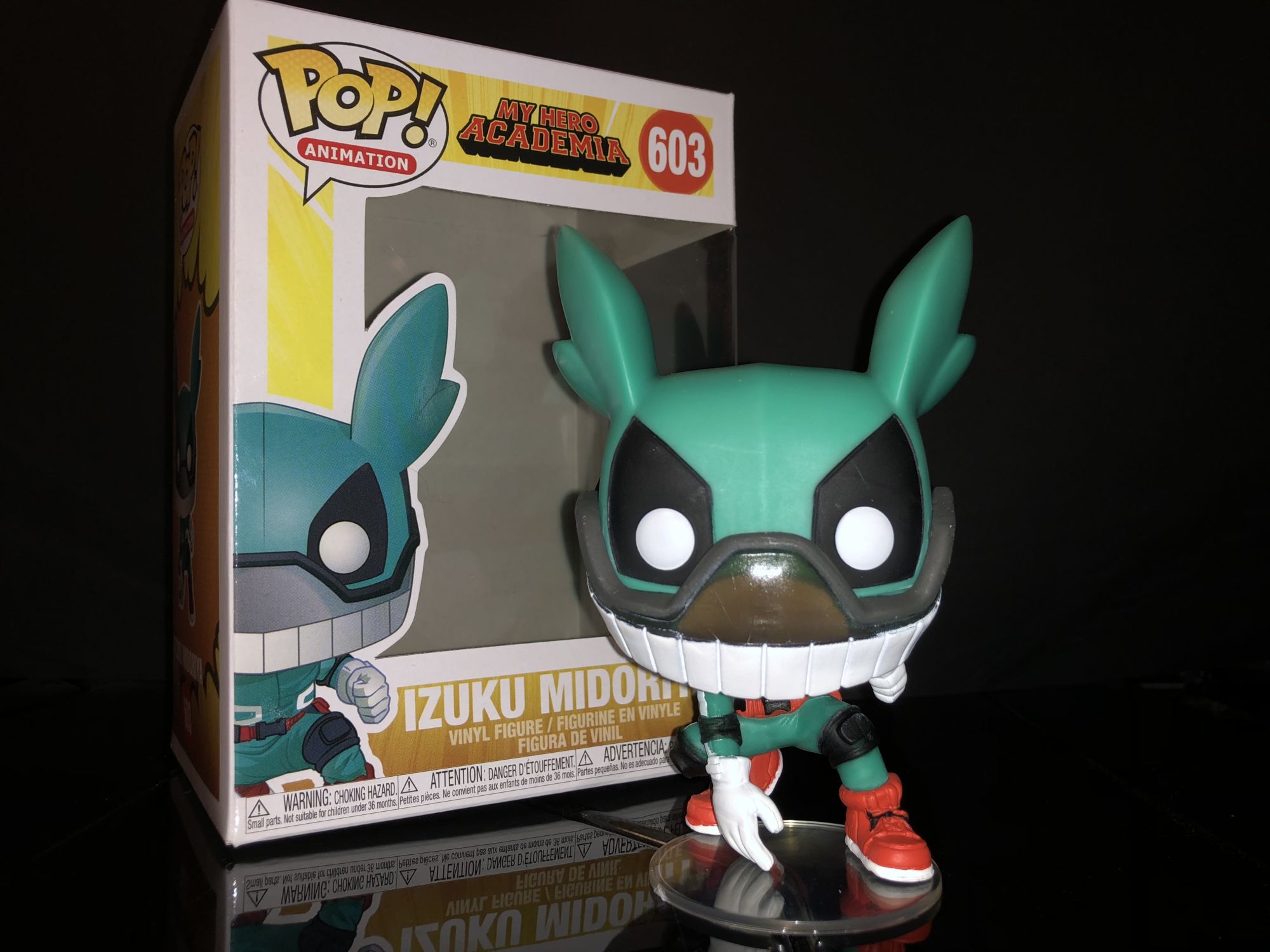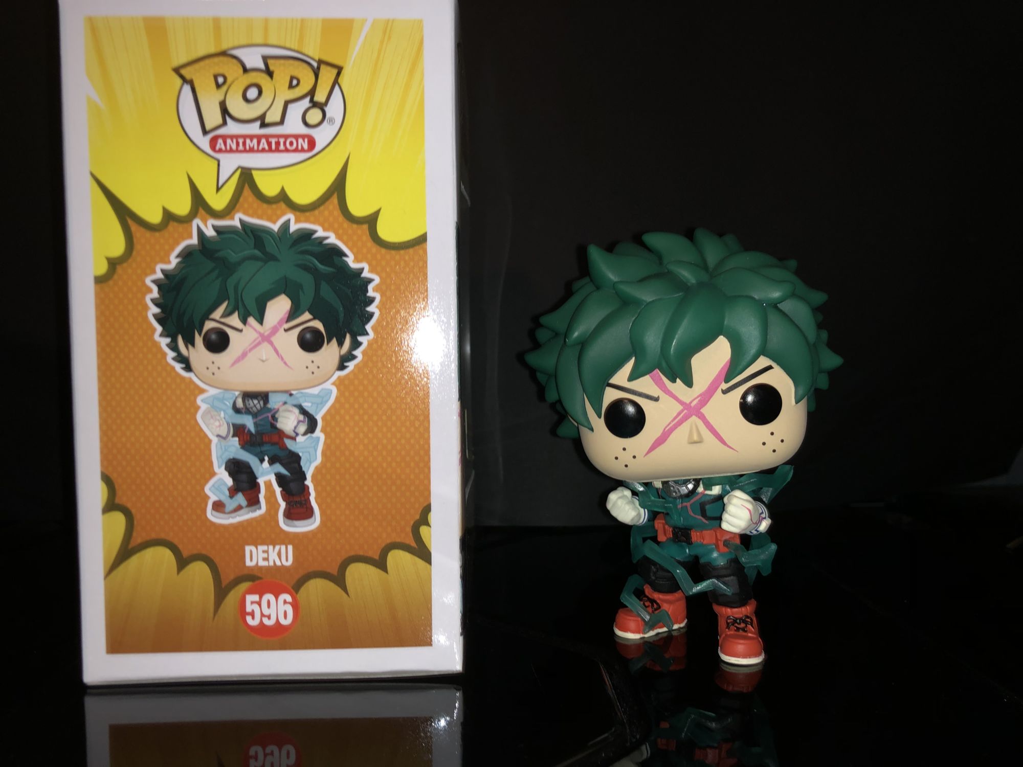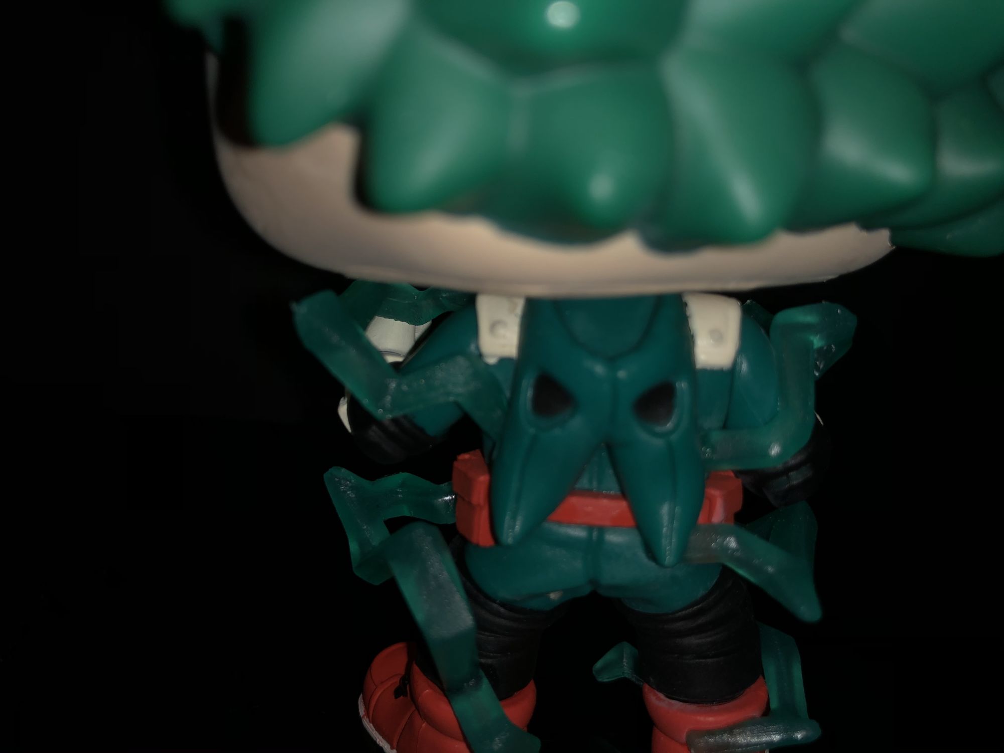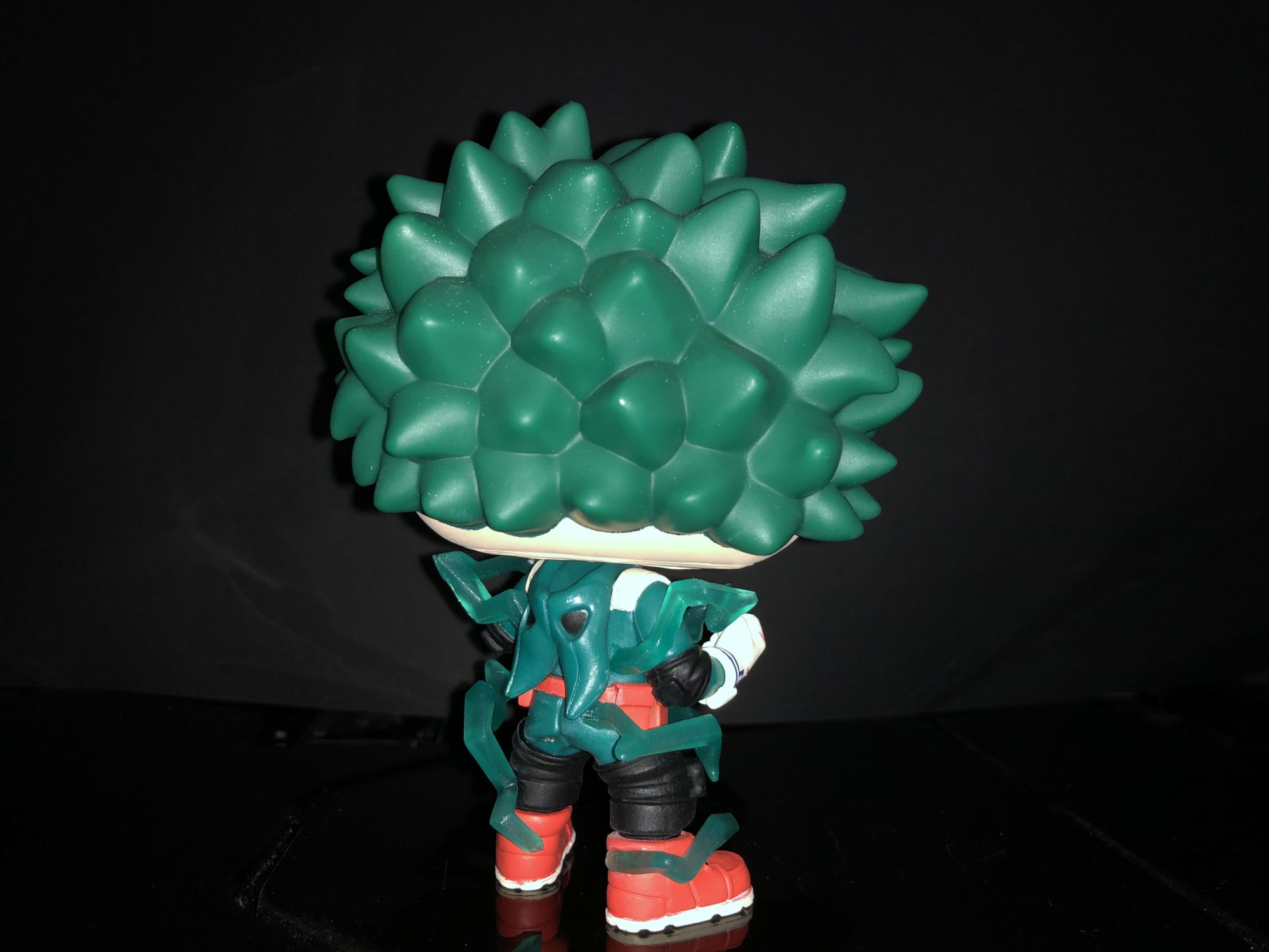 First up is the Entertainment Earth exclusive Deku Funko Pop! He is more detailed than ever and even shows off his newly updated costume. We could see this in Season 3 when he focused more on his legs as units of All for One. This Deku is unique from more than just a costume he does glow in the dark!. The giant red X on his face does show the power surrounding along with full-body electricity around his body. We have seen this before in a lot of the Dragon Ball Z Funko Pop's and I enjoy it on this figure. Deku glow features aren't represented here in these photos but I can assure you it is awesome. The detail on this character is definitely given off amazing energy and is perfect for any My Hero Academia.