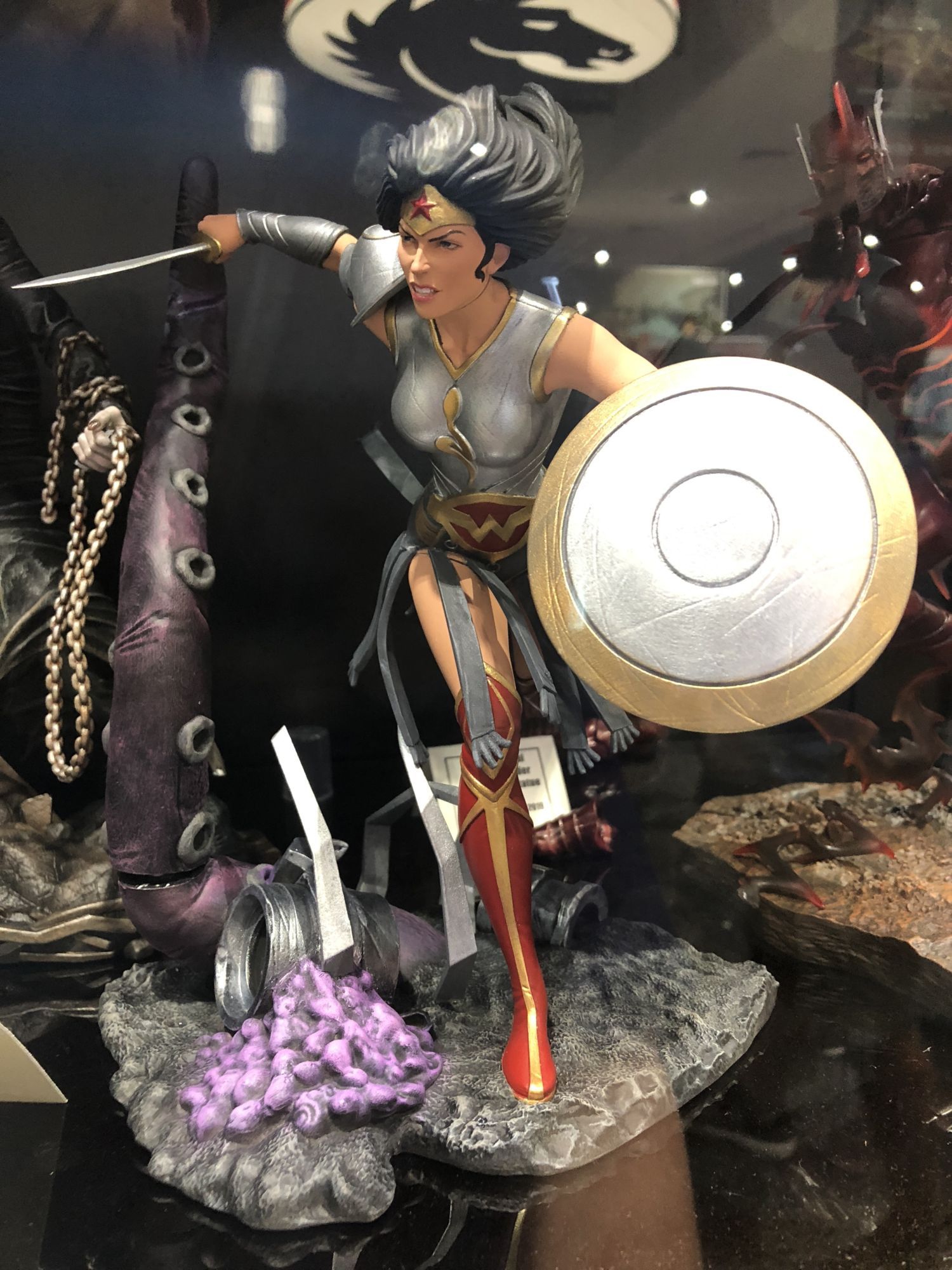 Diamond Select Toys had one of the most-stuffed booths at SDCC this year. There are so many new products coming from them — it really is astounding. They have found a hit with their line of Gallery statues, and they are charging full force into those. With good reason too — they are of great quality, and the $45 price point is an easy sell. People are shocked that they don't cost more when I show them the statues. And the depth of characters is ridiculous: Dazzler, John Wick, Nightwing, and Aquaman film statues. They are really doing an excellent job. Kudos, guys and gals.