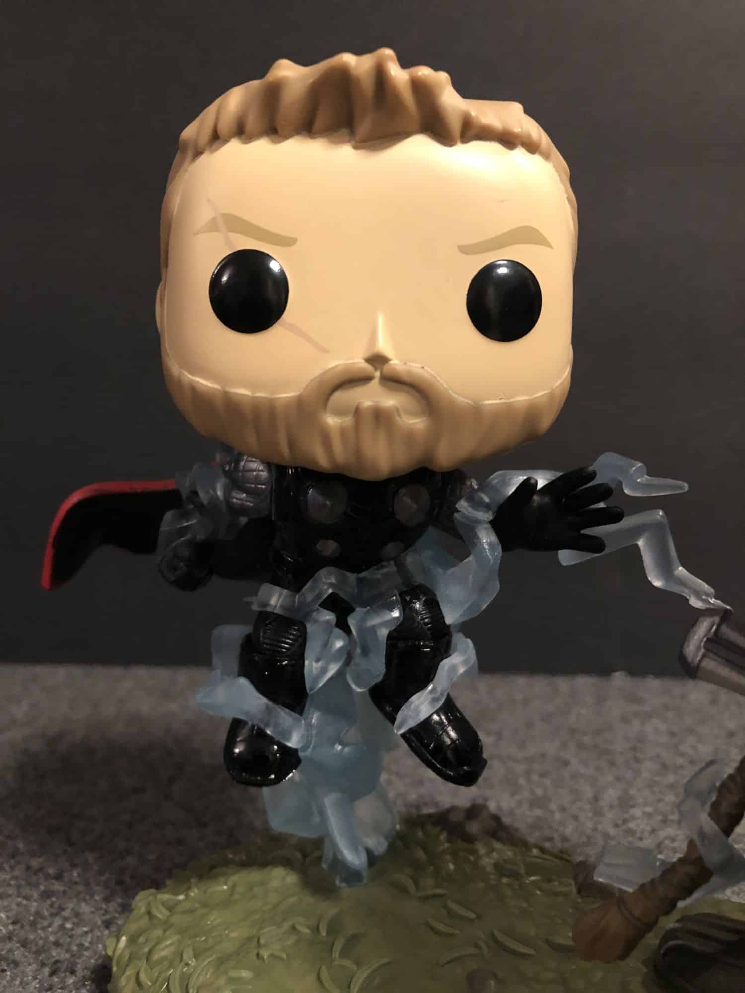 First, the Movie Moment. This is the coolest Thor Funko has ever done, let's get that out of the way first. The lightning effects raising him up off the ground, the suit he has on, the flowing cape. It all adds up to the best Thor ever. Thanos is cool too, with Thor's axe sticking out of his chest. The only thing that could make it better would be if his hand was raised into a snapping pose. The best part of this one? These are not bobbleheads! So refreshing to have Marvel Funko that are not bobbling all over the place, sometimes that ruins the way these will display. This one is a complete home run.