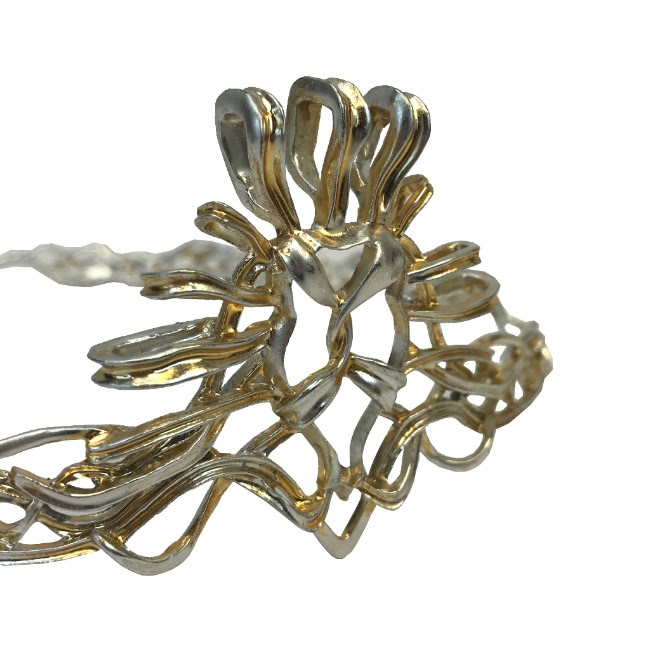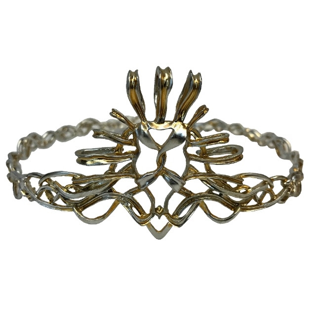 Cersei's silver and gold crown symbolizes her loneliness and divisions in her family on her journey to rule on her own terms. According to the designer of the original prop, the center of the crown is the lion sigil abstracted — its mane represents the Iron Throne, once a desire, now her prize.