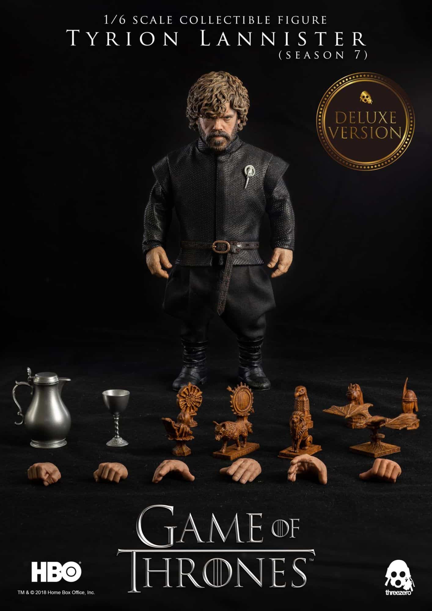 Threezero's officially licensed Game of Thrones series of 1/6 scale collectible figures continues with the an updated version of Tyrion Lannister, as seen in Season 7. Pre-orders for Tyrion, Hand of the Queen, will begin on August 23rd at 9:00am HKT at www.threezerohk.com; priced at $178 USD / 1385 HKD with worldwide shipping included. A deluxe version will also be available, and will include nine 1/6 scale map markers. The deluxe version is priced at $198 USD / 1545 HKD and also includes worldwide shipping.