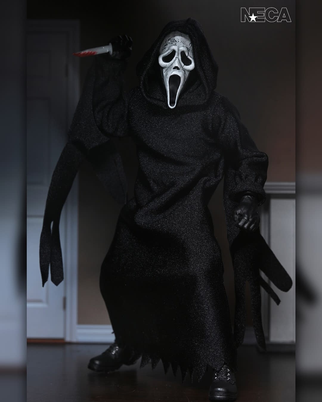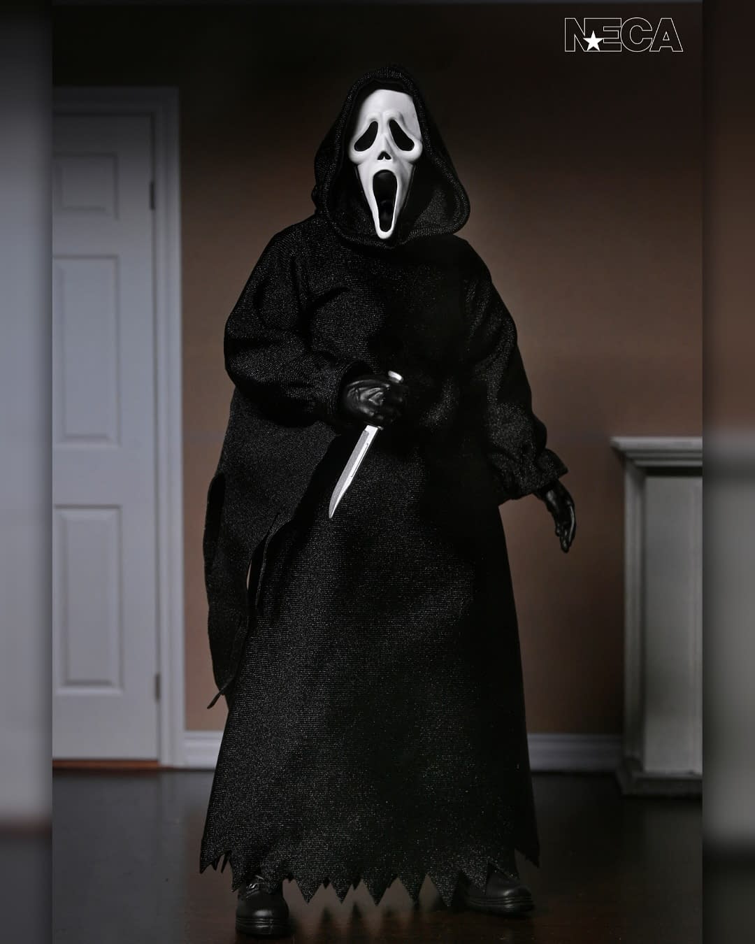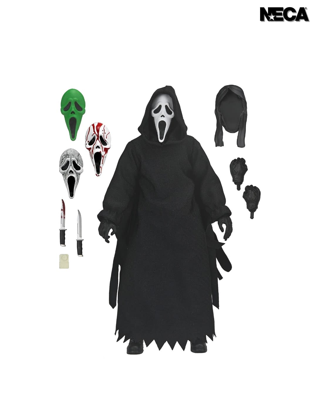 - NECA reissues the iconic 8” Ghost Face figure from Scream with updated masks and tailored clothing.