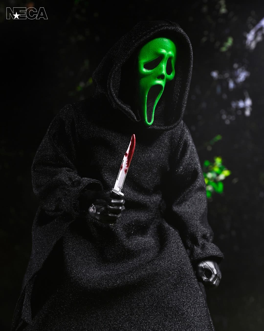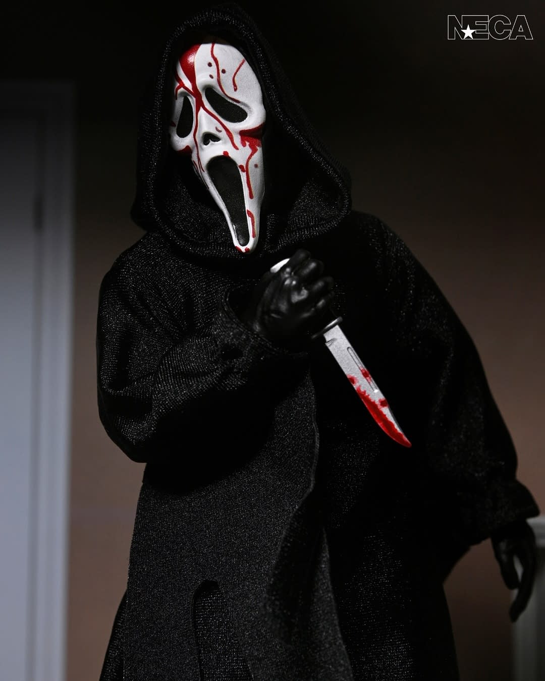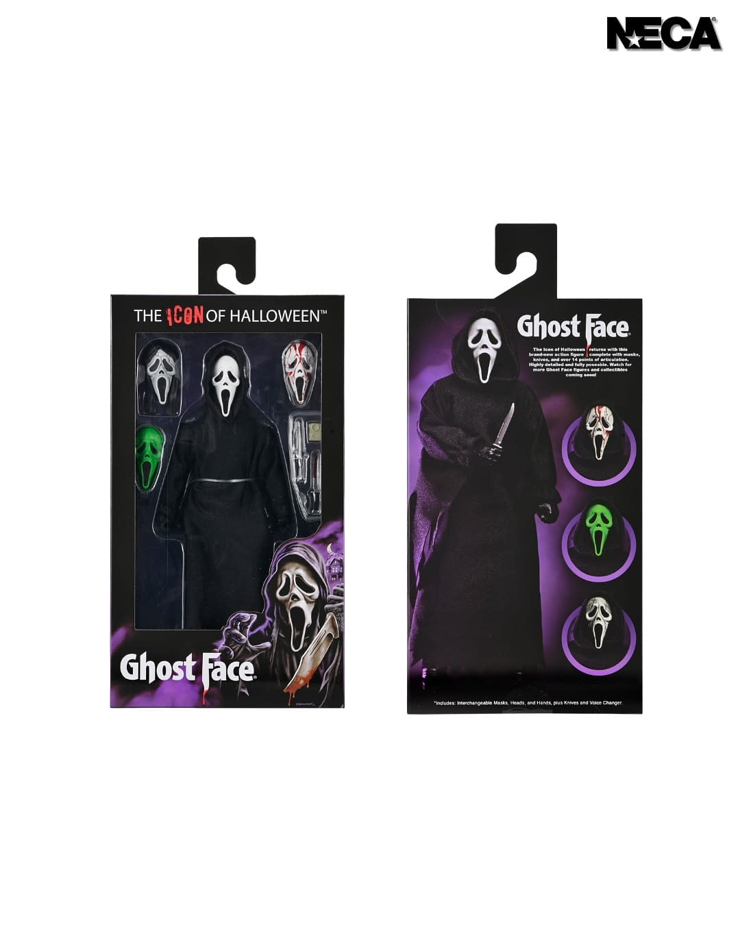 - NECA reissues the iconic 8” Ghost Face figure from Scream with updated masks and tailored clothing.