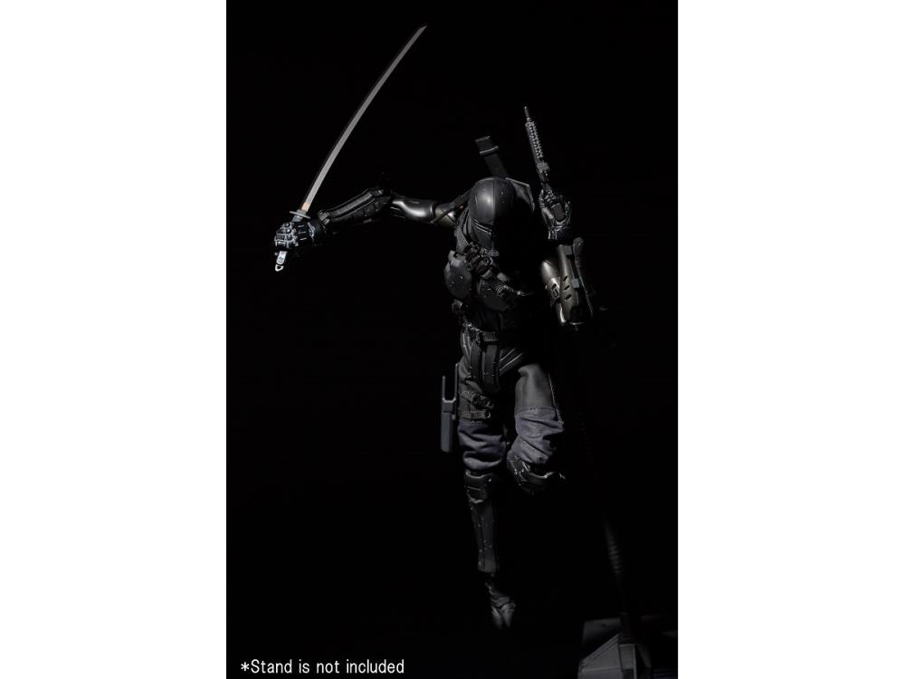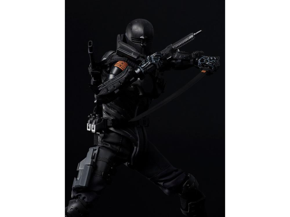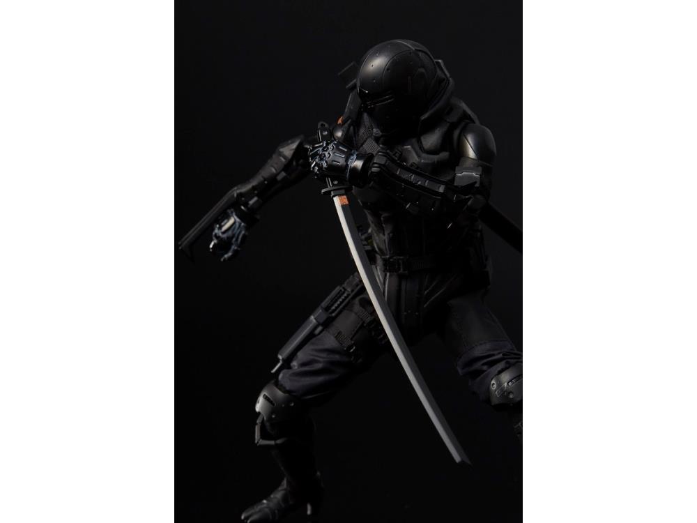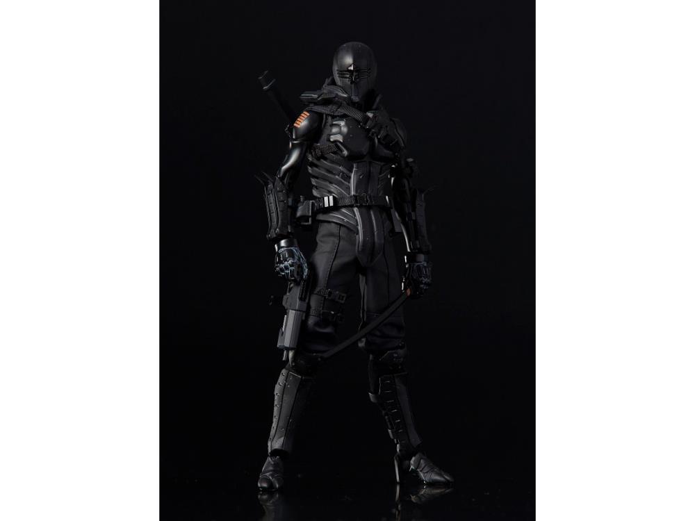 "The PX Previews Exclusive G.I. Joe x TOA Heavy Industries Snake Eyes 1/6 scale figure is based on an original re-design of the character by Japanese SF artist Nihei Tsutomu. The figure was developed using the Synthetic Human body made from 1000toys and wears actual clothing and armor over the body while maintaining the articulation of the original body."