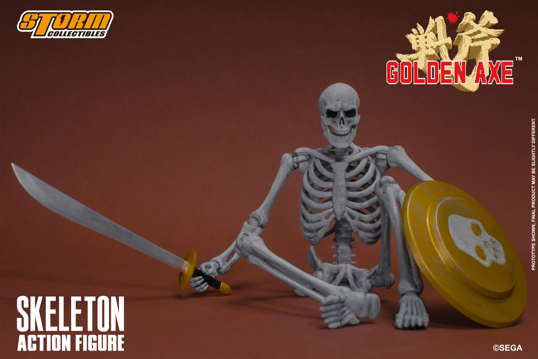 Golden Axe is coming back not with a new game but with new collectibles that are ready to battle it out on your shelves. This time the skeleton also known as the Skeleton Soldier wants your head. The skeletons are most notorious for their pivotal role in the 16 bit side-scrolling Golden Axe game. The skeletons might just be bones but they are decked out with accessories. They come with two fully articulated skeleton bodies and 10 pairs of hands. They do come with a sword each as well as one right-handed shield and one left-handed shield. This figure set would go perfect with the recently announced Ax Battler and the Red Dragon set figures recently announced by Storm Collectibles. If you're a fan of Golden Axe it is time to step your game up and join the collector world.