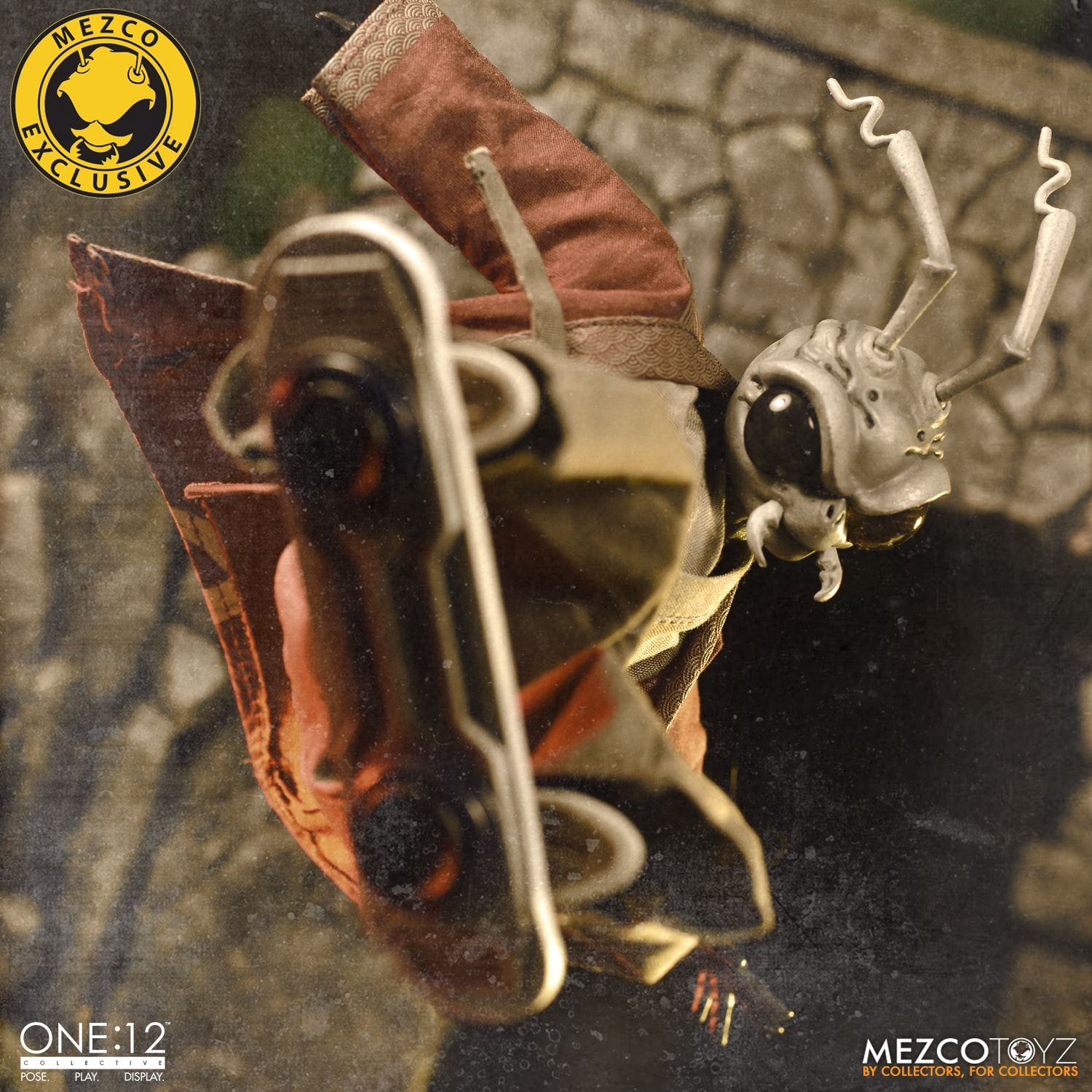 Gomez: Lone Roche and Grub are making their way as a new figure release recently announced by Mezco Toyz. This figure will be set for their One:12 Collective series. Lone Roach himself is loaded out with multiple interchangeable pieces and weapons. He does come with a kimono, hakama, and even a removable waist belt. He does come with some katanas that can be sheathed in his waist. That simple little detail like being able to store a sword in the accessory on a figure gains huge brownie points in my book. Gomez does come with his faithful companion Grub and he can be stored in his backpack. And they also come with the accessory of the hoverboard that they usually travel with and can magnetically attach to Gomez's feet. The figure does also comes with a 10" x 14" poster featuring these two characters and can be a great addition to the set. This is a very interesting concept coming out of Mezco Toyz in there at One:12 Collection but I feel like this is a great figure all around especially if your fans of Gomez: Lone Roach and Grub.