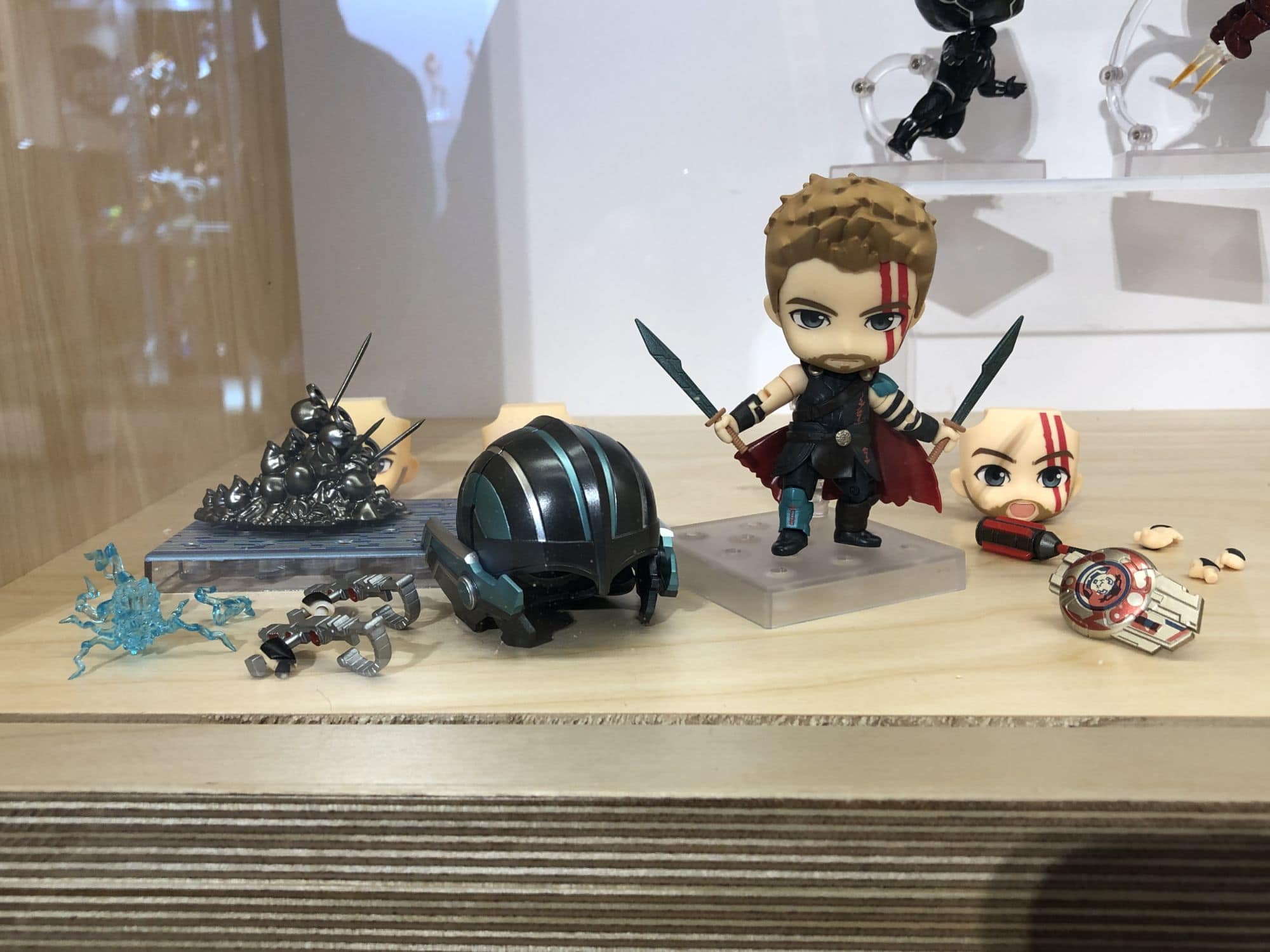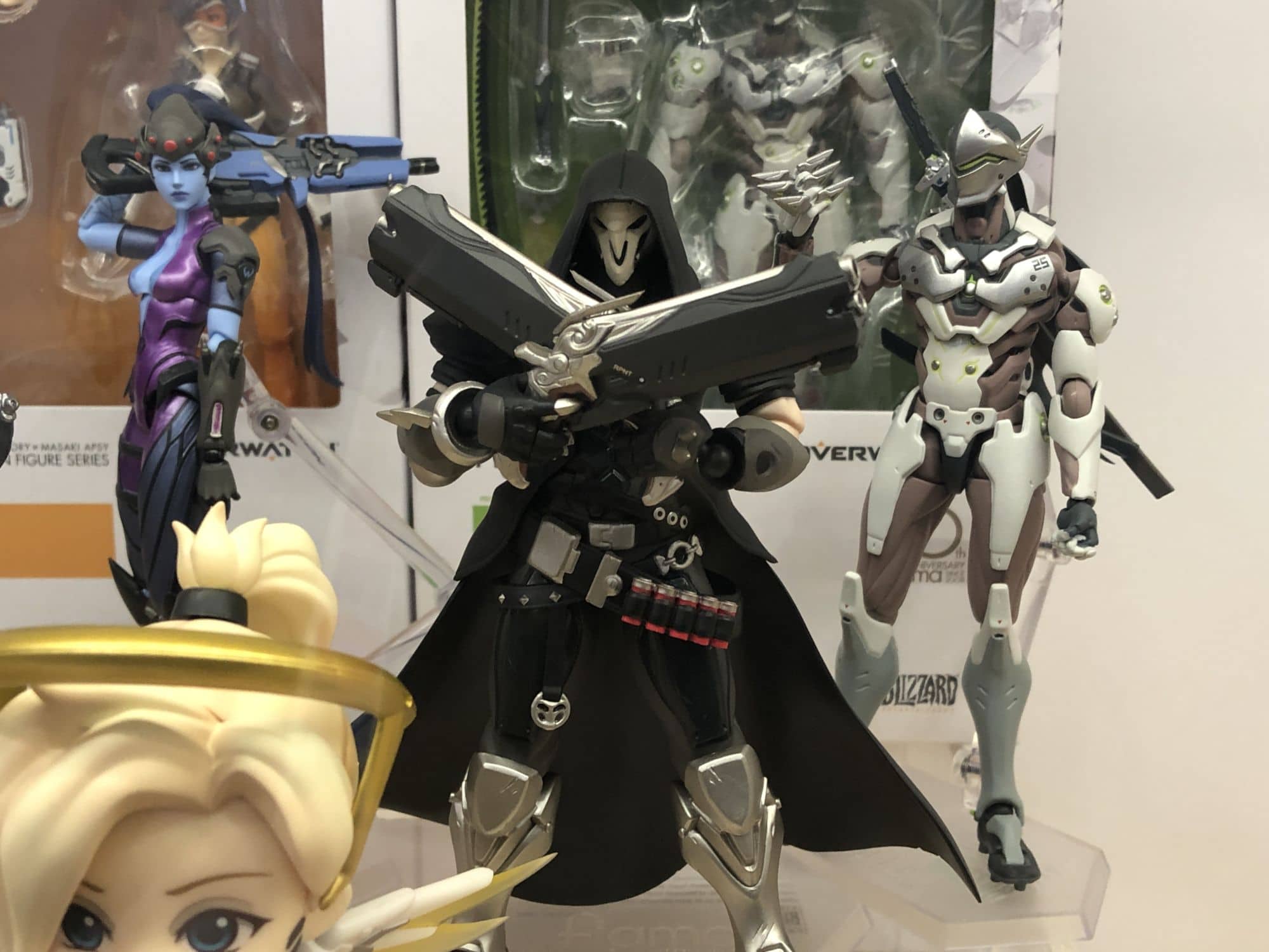 Maybe their most popular line is their Nendoroid figures. These little adorable figures come with multiple accessories, faceplates, and other pieces unique to the different characters. On display they had Nendoroid figures from Marvel, a sweet Yami Yugi from Yu Gi Oh!, their full line of Overwatch figures, and more.