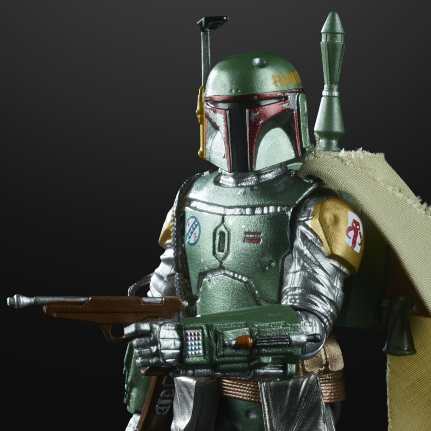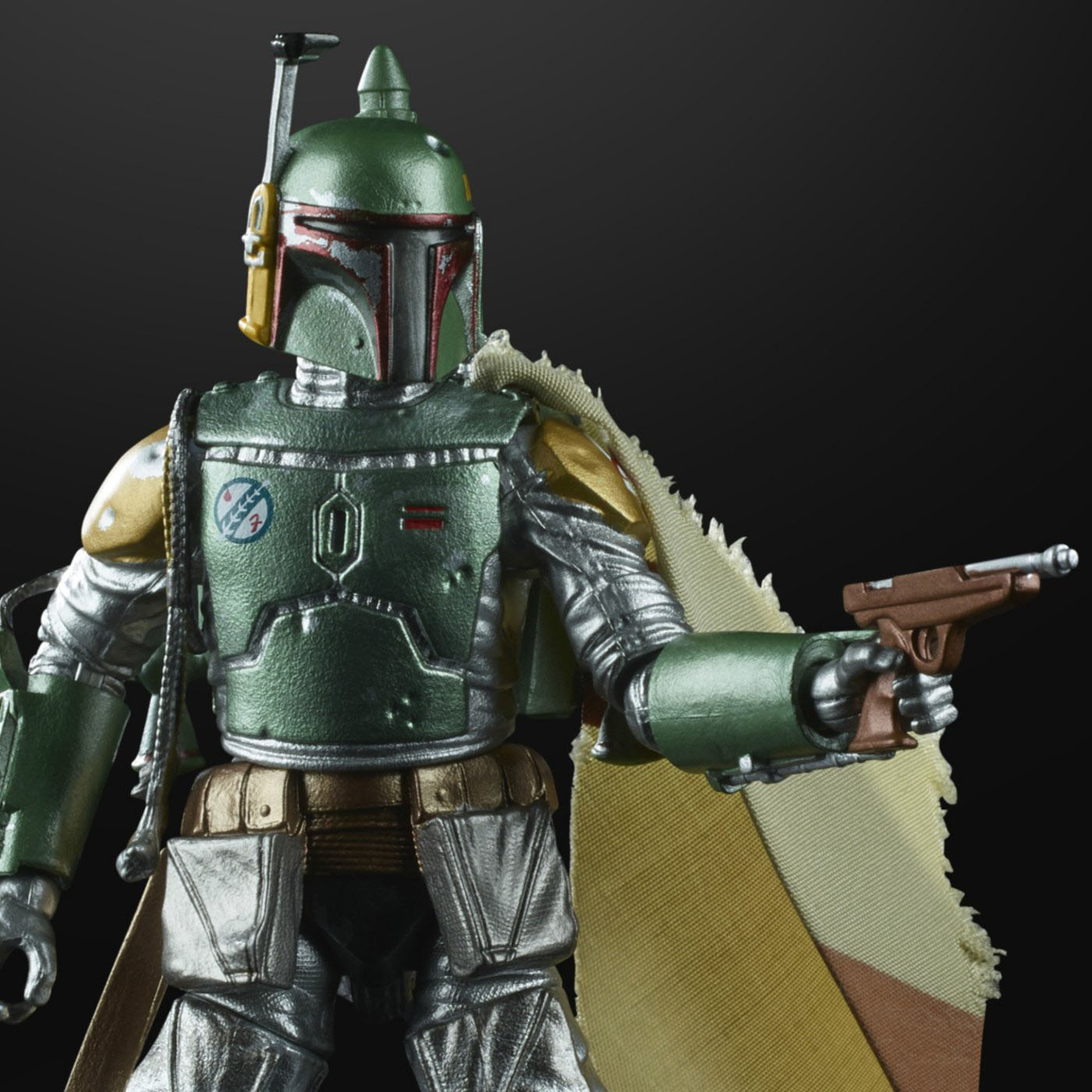 "The Bounty Hunter comes back in his armor from The Empire Strikes Back with all of his blasters and gear, plus a cloth cape, with one mission in mind: to make your collection even better. The battered armor has a sparkling metal shine, making it even better than ever before."