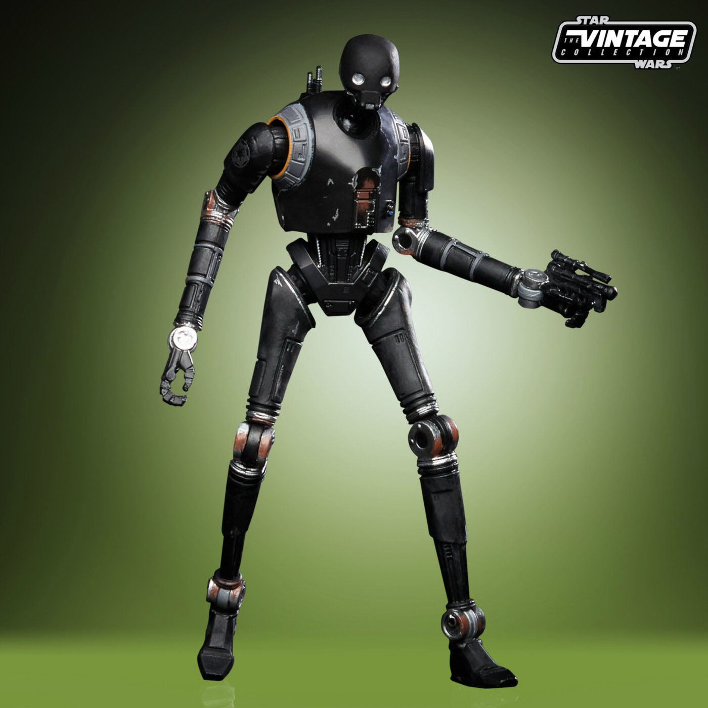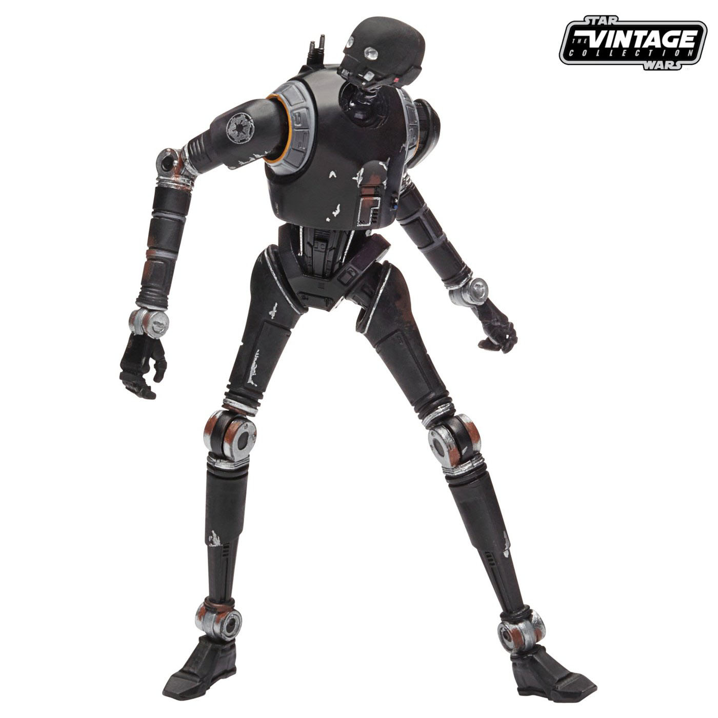 "The Vintage Collection is here! Hasbro's famous super-articulated 3 3/4-inch action figures have returned on retro-styled packaging recalling the original Kenner Star Wars action figures. The Star Wars The Vintage Collection K-2SO 3 3/4-Inch Action Figure is the kind of ex-Imperial droid you want to rescue you from prison!"