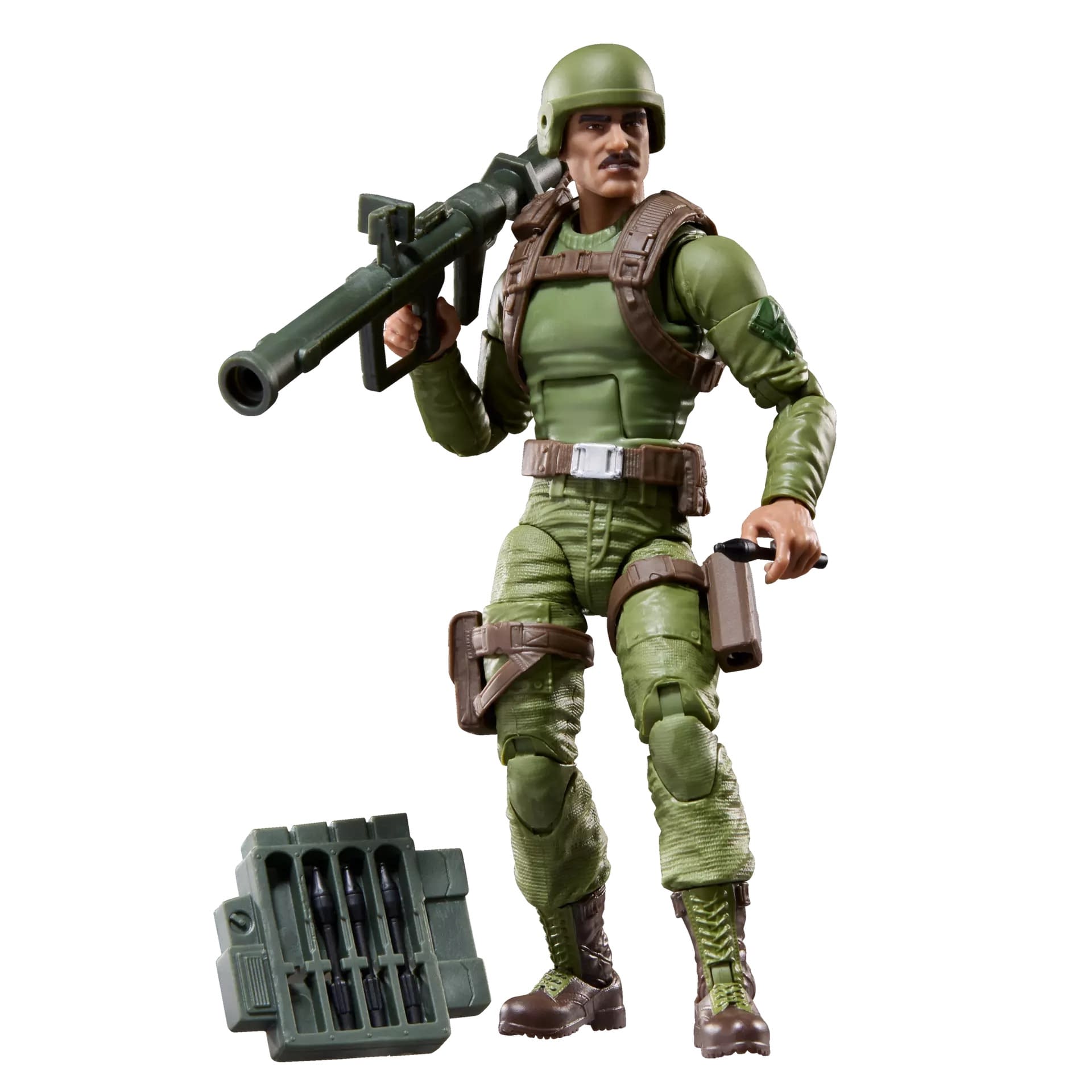 "The G.I. Joe Classified Series evolves the retro toy figures fans know and love into a highly articulated 6-inch (150 mm) scale with premium deco and detailing. Specializing in armor-piercing and anti-tank weapons as well as demolitions, Zap is cool under fire. He has to be…the stuff he works on could blow up at anytime. Features a classic deco and design of the G.I. Joe Bazooka Soldier that fans of the original 1980s G.I. Joe characters will love and 12 accessory pieces inspired by the character's rich history."