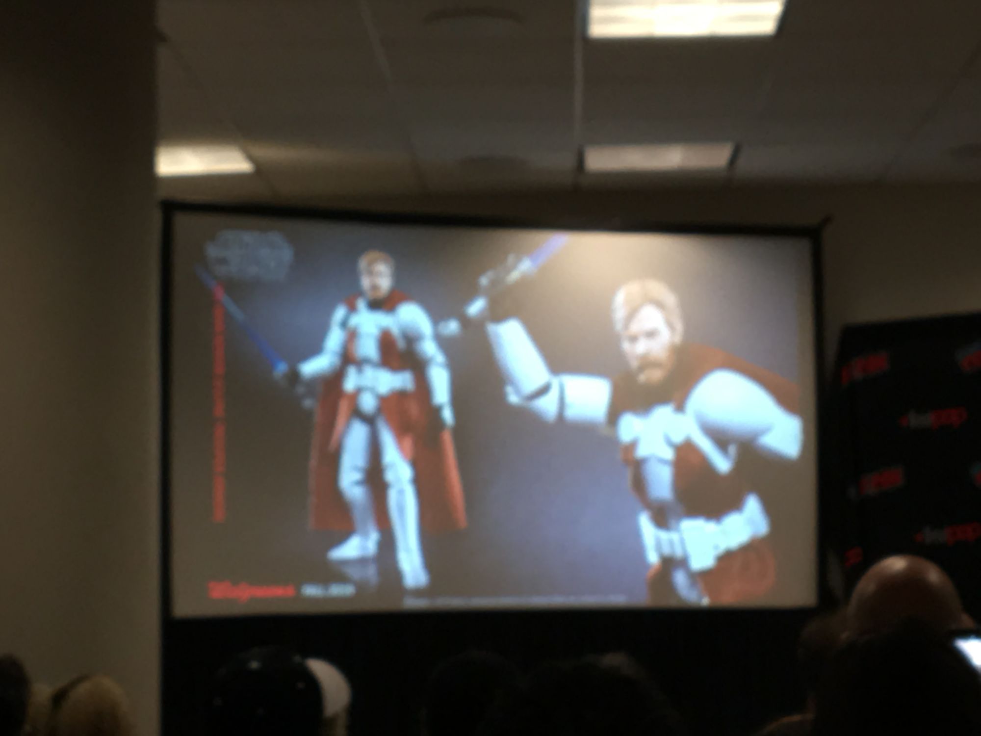 A new Obi-Wan Kenobi (Clone Trooper Armor) was shown. This is part of the Black Series but is inspired by both the Clone War cartoon series and the Genndy Tartakovsky Clone Wars shorts. It is a Walgreens exclusive and will be available Fall 2019.