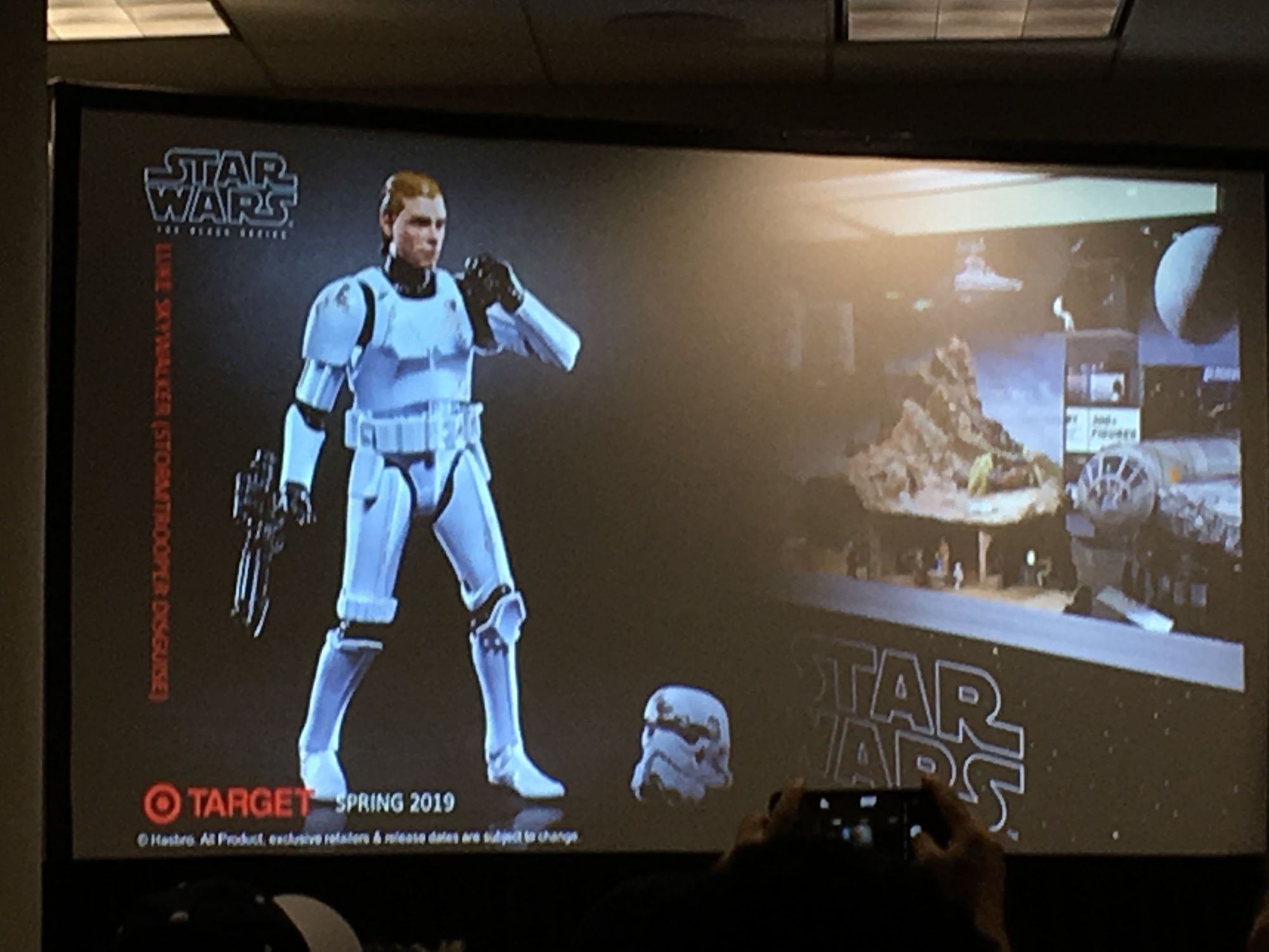 A Target exclusive to be released in Spring 2019 will be Luke Skywalker (Stormtrooper Disguise) with wet hair from the trash compactor in the original Star Wars. This was something the team was pestered about by fans because of an Easter Egg in the diorama shown at SDCC and HasCon 2018.