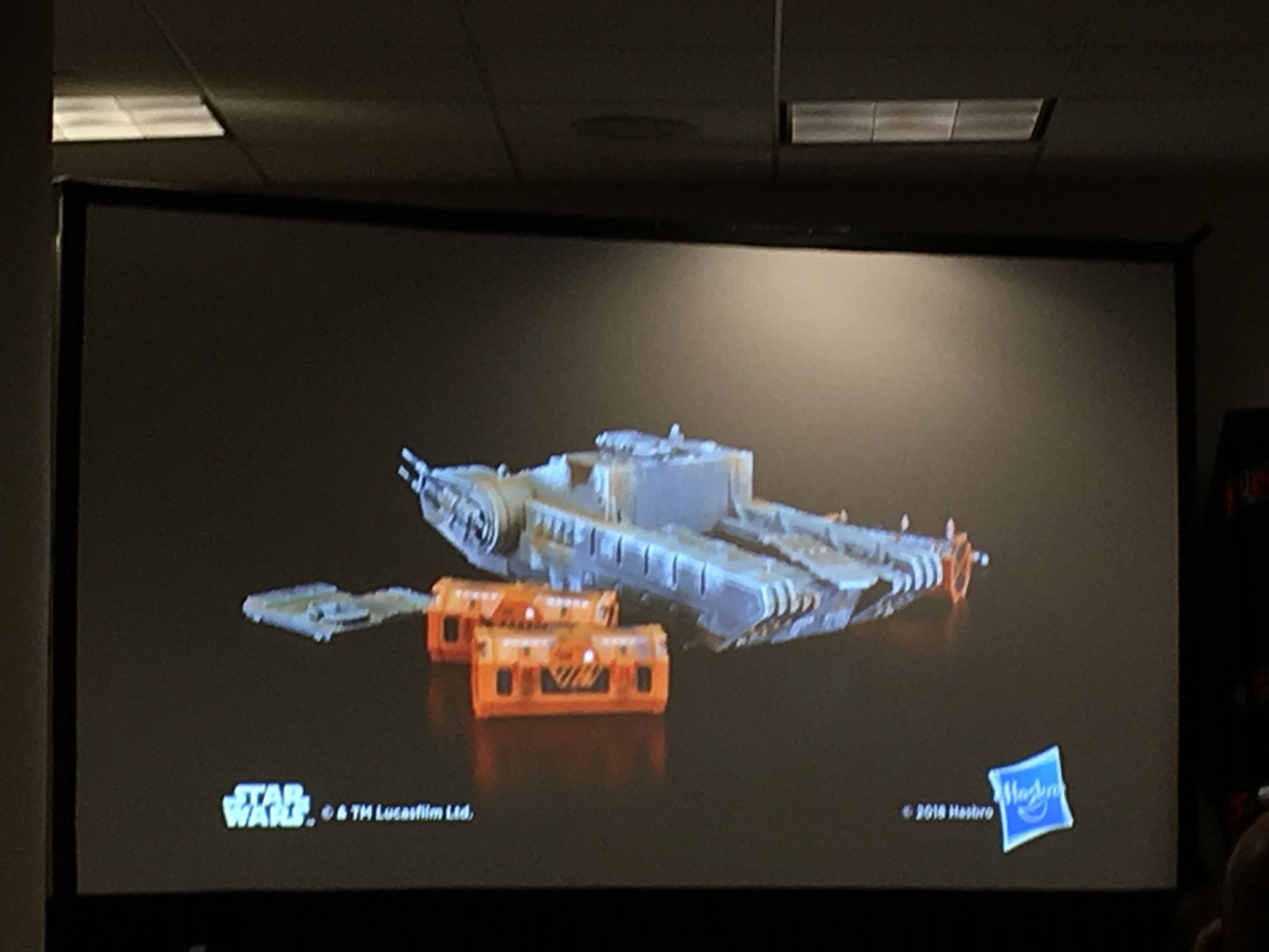 On Sunday, during one of the final panels of the weekend, Hasbro unveiled their latest offerings from its Star Wars lines. As the Star Wars theme played, two Hasbro panelists came out wearing Darth Vader masks, Steve Evans, Design Director, and Patrick Schneider, Senior Brand Manager. They asked for younger fans in audience to come help with the presentation as other panelists not in attendance are "working on a small, indie film coming out at the end of next year."