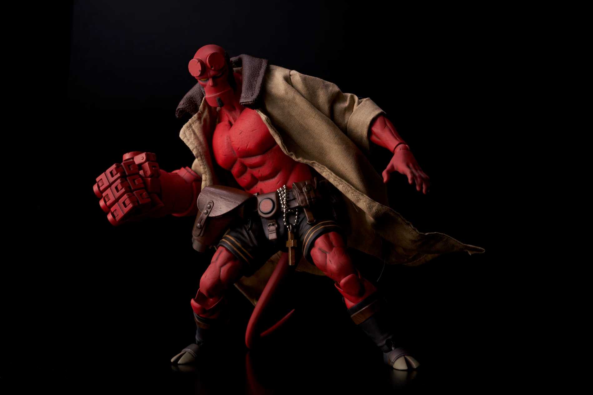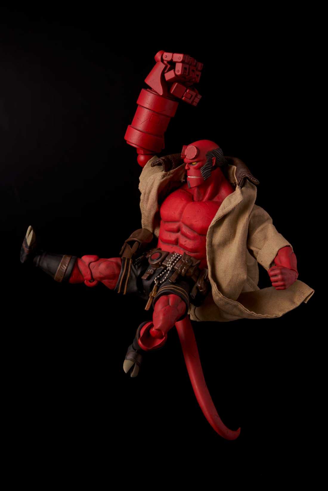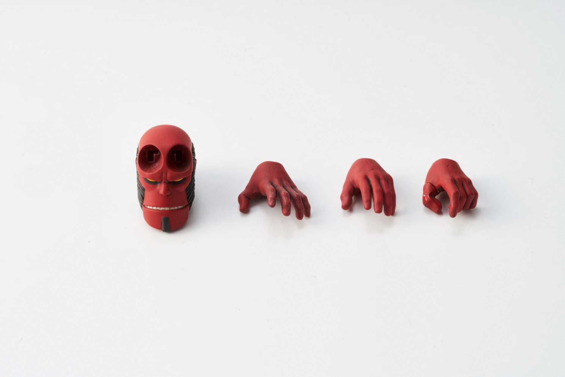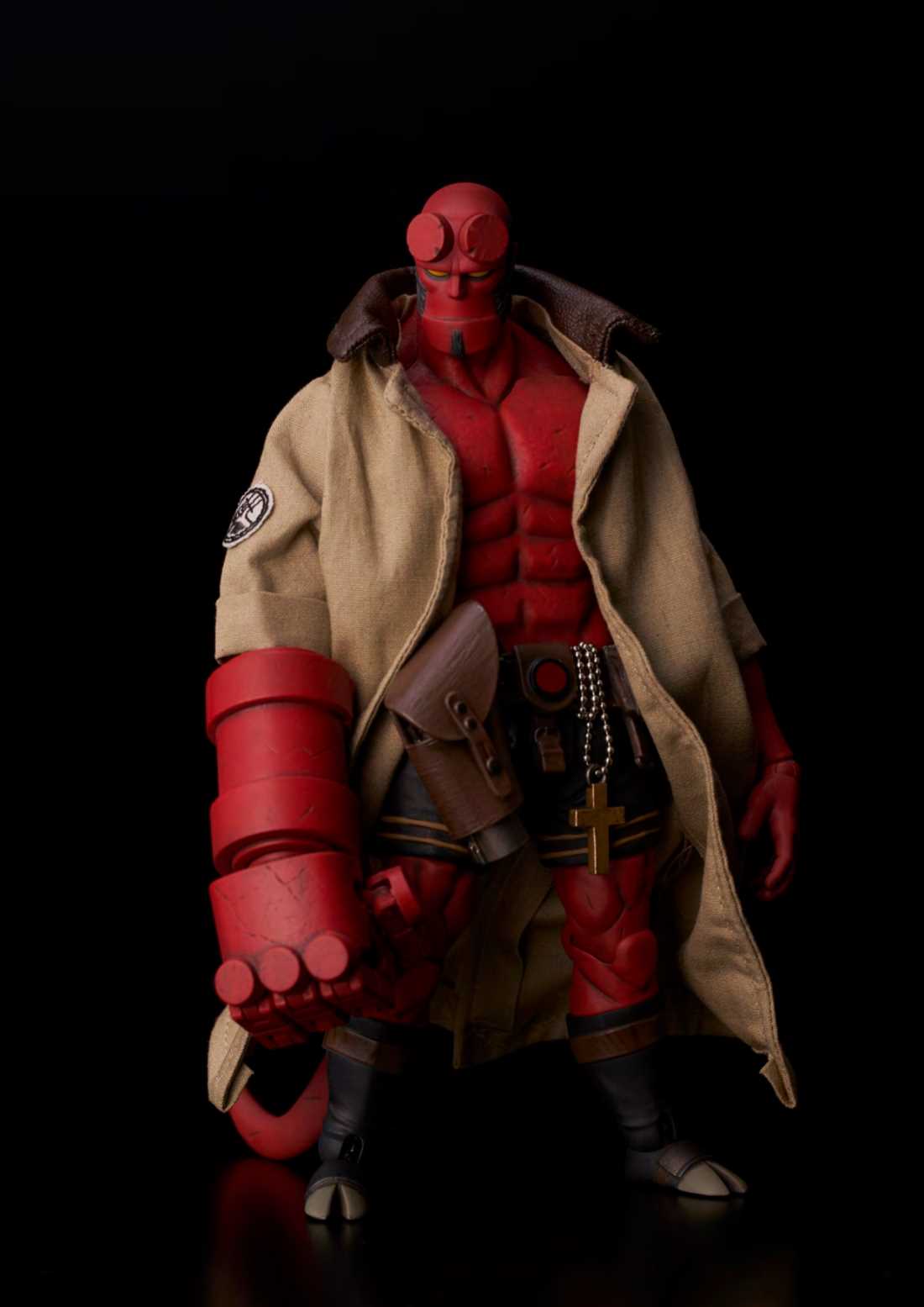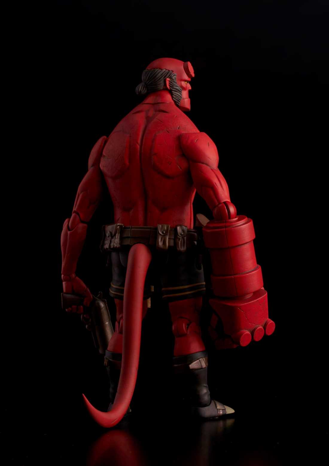 From 1000toys. A PREVIEWS Exclusive! 1000toys is proud to present the 1/12-scale fully articulated Hellboy action figure from Mike Mignola's comic series! Developed to capture the touch of Mignola seen in the original art without giving up anything in articulation, this is the Hellboy action figure that fans have been waiting for! Along with an interchangeable head and 3 extra hands, this PREVIEWS exclusive version includes a BPRD T-shirt that Hellboy can wear!
