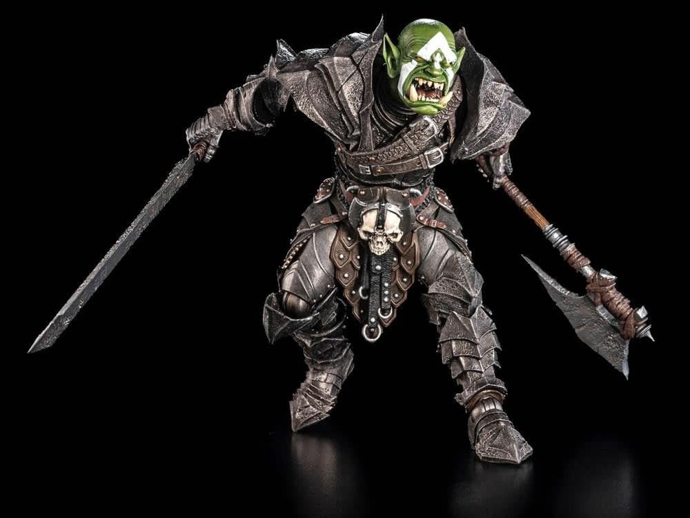 The Mythic Legions: Legacies of Mythoss – Urzokk (Legion of Arethyr Ver. 2) action figure is a highly anticipated update of the brutal orc warlord from Four Horsemen Studios. As part of the new Legacies of MythossUrzokk v2 also features three brand-new weapons, including a sword, a battle axe, and a large shield bearing the Legion of Arethyr emblem, a nod to the original release. The orc warlord will also include three newly sculpted heads, with a stoic, gritted-teeth, and a fierce battle cry expression to capture the heat of war.