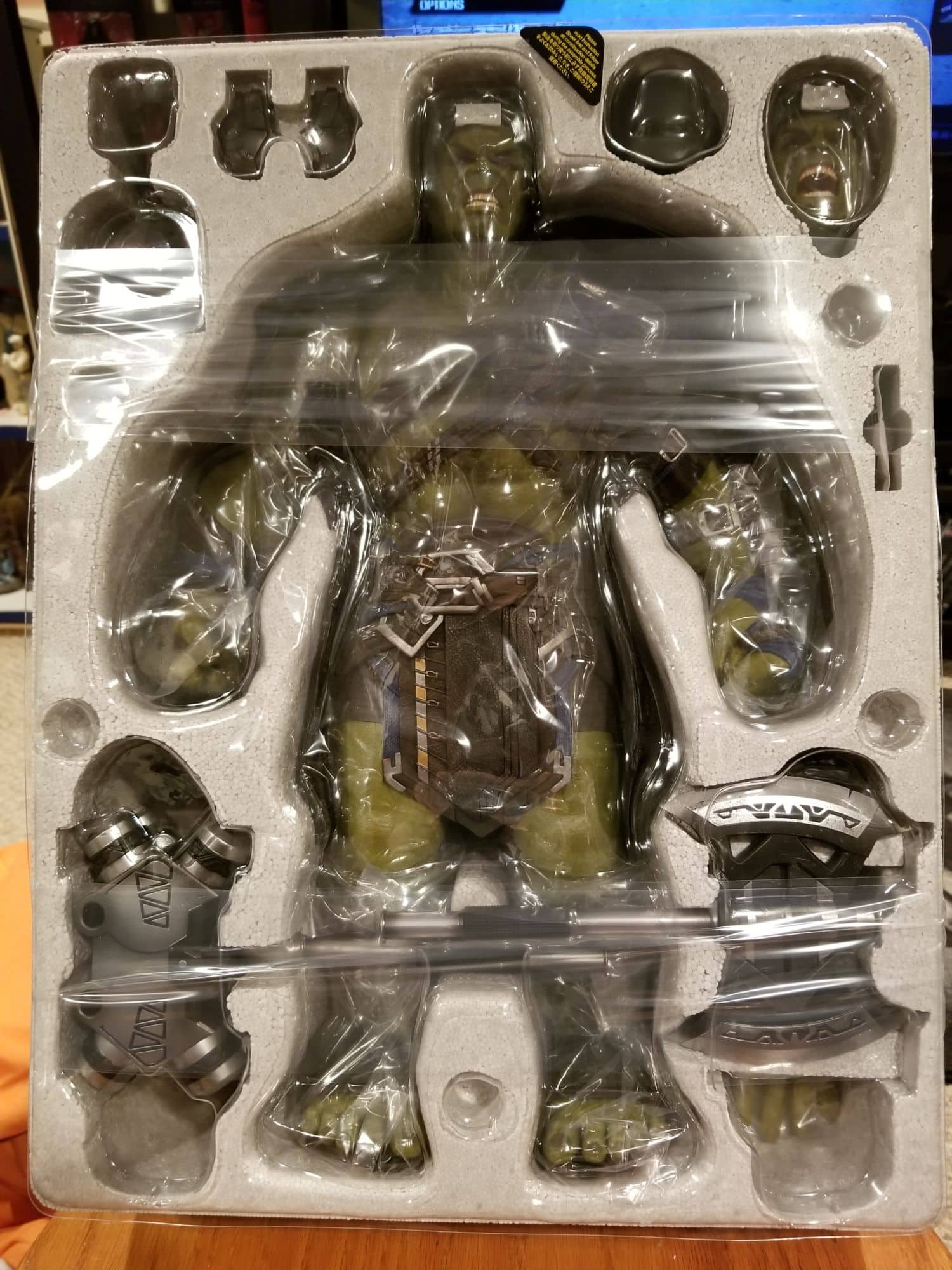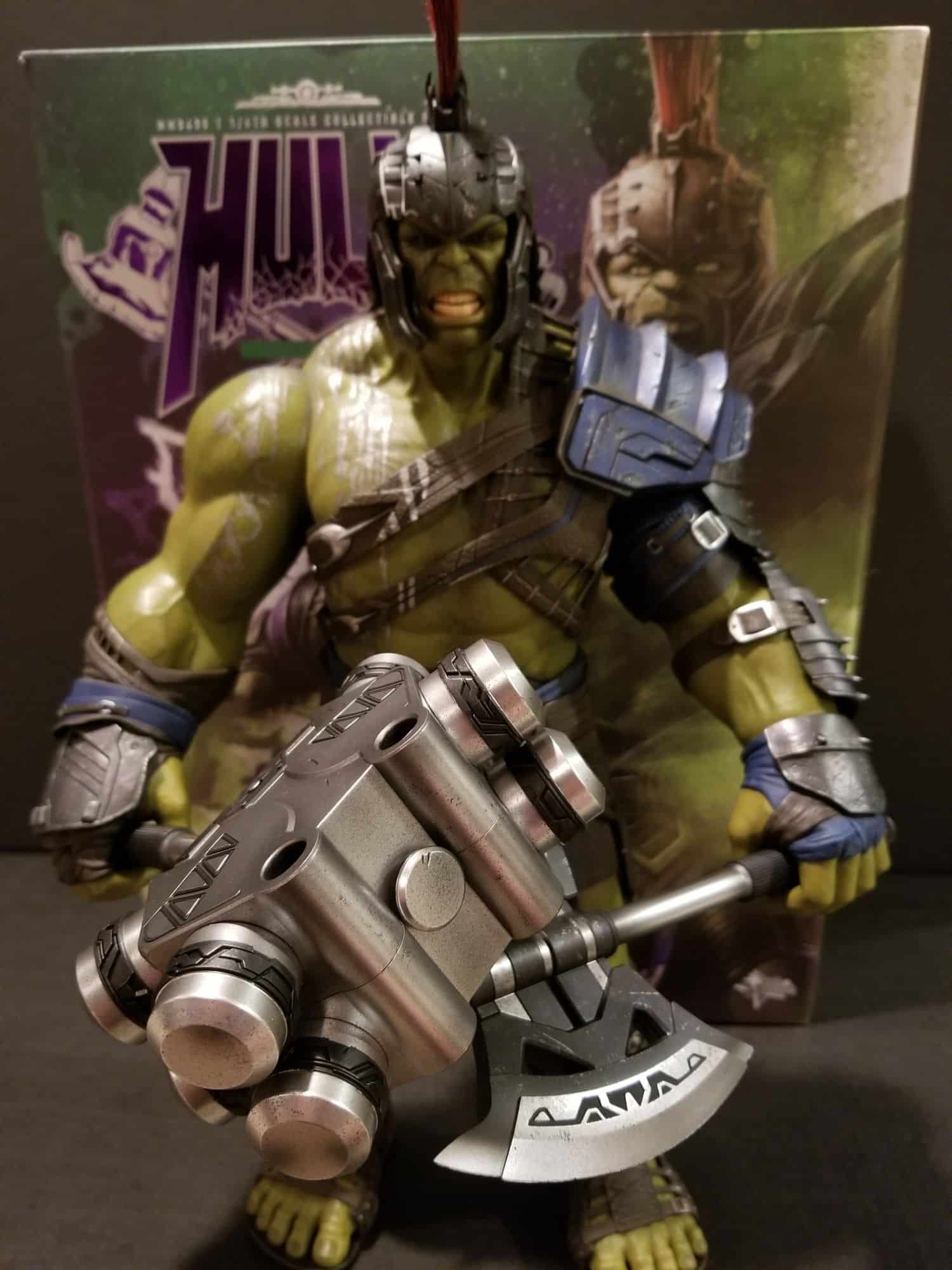 For those that have had the pleasure of owning Hot Toys before, you know to expect the highest details and craftsmanship. I was one of those happy few that originally started collecting statues and "downgraded" to start focusing on 1/6 scale figures instead for this exact reason. Today we will take a look at the Thor: Ragnarok Gladiator Hulk 1/6 scale figure.