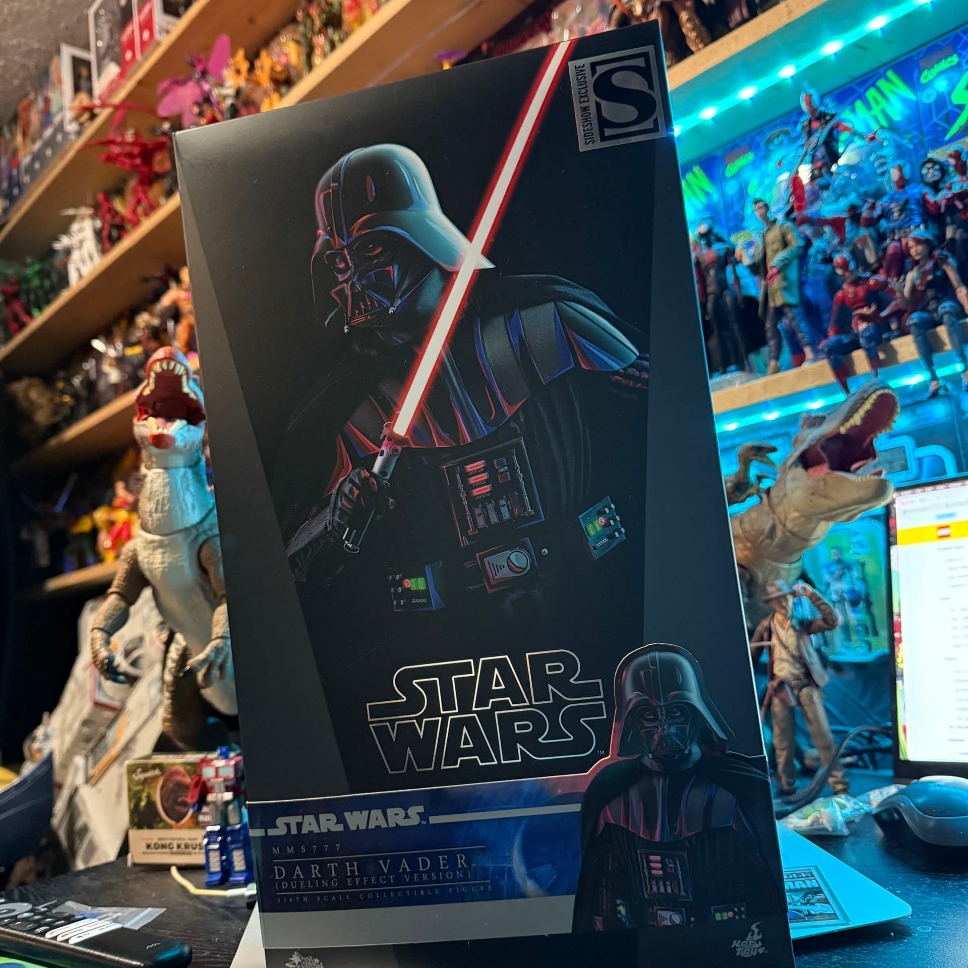 - Hot Toys Exclusive Dueling Darth Vader features stunning cel-shaded design and LED effects for true Star Wars fans.