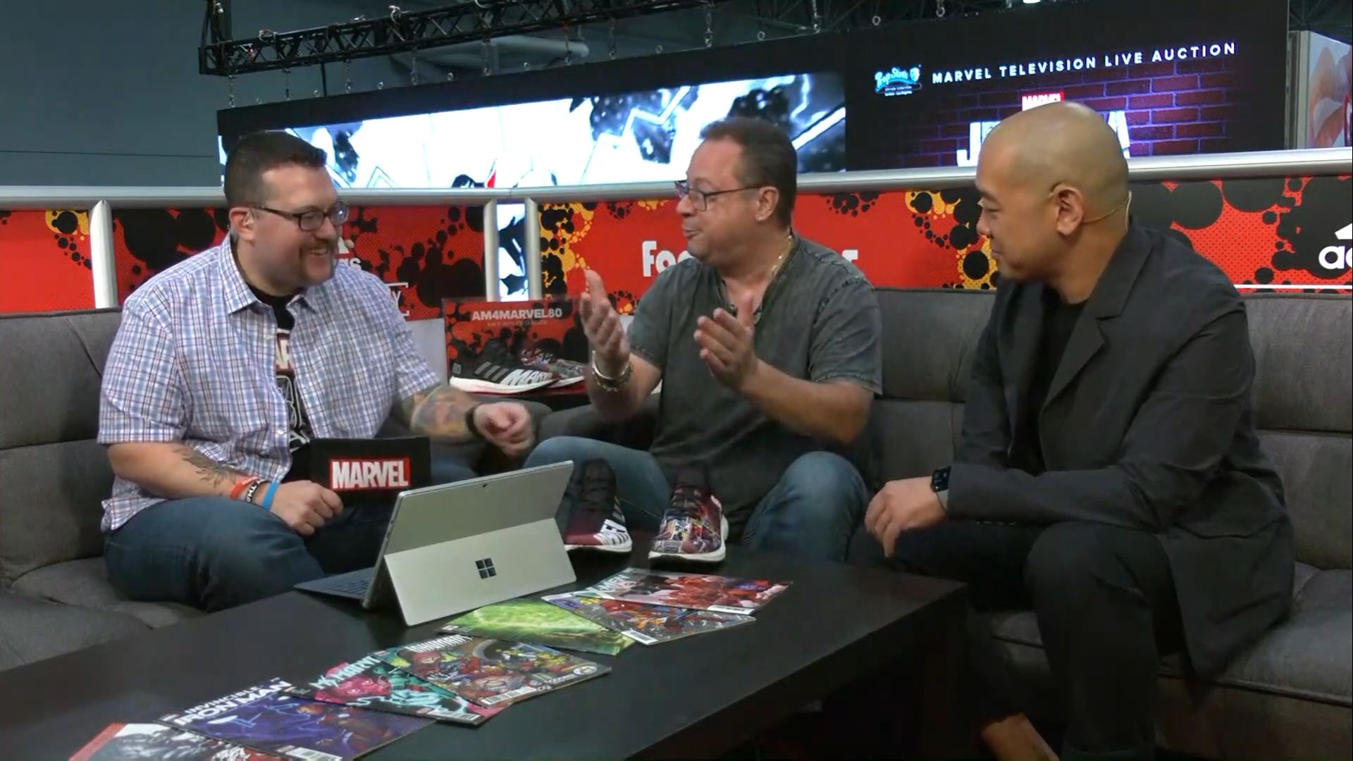 Marvel CCO's Joe Quesada has been talking about the Adidad Footlocker sneakers he has been designing for Marvel's 80th anniversary. How he had to learn how to draw around the foot, rather than attempting a flat design which was then warped to fit.